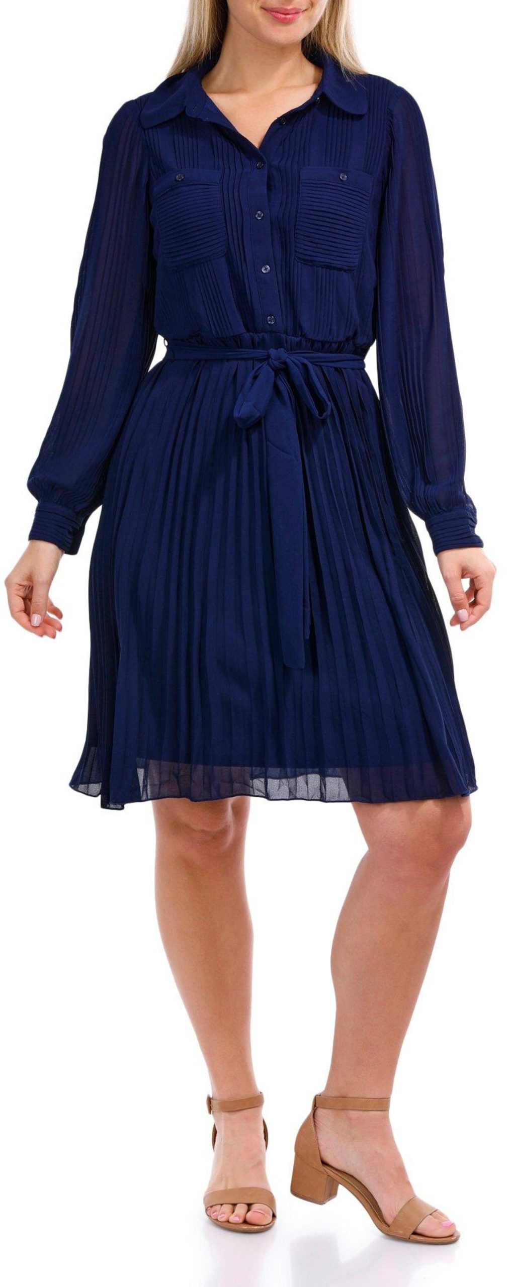 Embrace effortless sophistication with the Long Sleeve Chiffon Shirt Dress. This elegant dress features a waist tie that accentuates your figure, while the chest pockets add a touch of practicality and style. The lightweight chiffon fabric ensures comfort and grace, making it perfect for any occasion. Its long sleeves provide a refined look, ideal for both day and night.