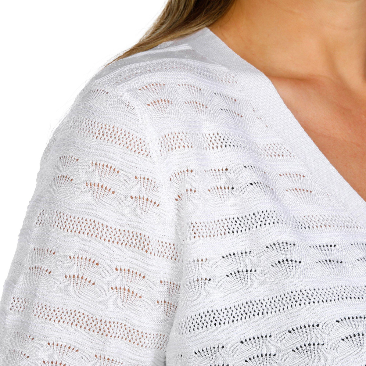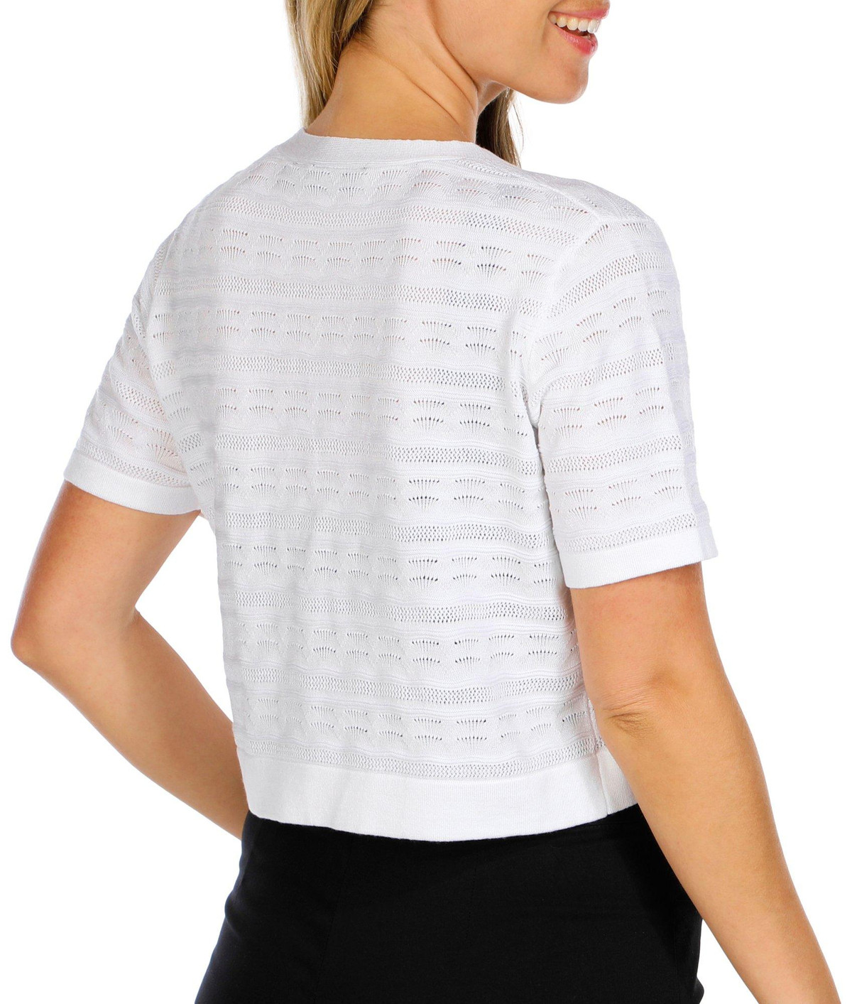 Nina Leonard Womens Short Sleeve Crochet Shrug