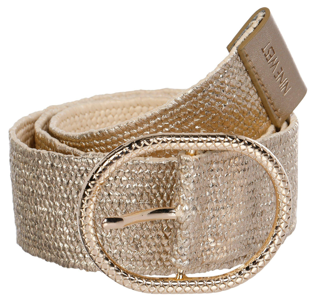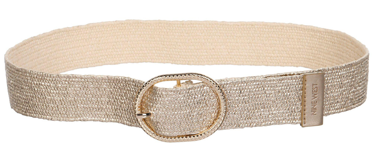 The Nine West womens belt in gold features a sleek oblong buckle that adds a refined accent to any outfit. Its metallic finish brings a touch of glamour while maintaining everyday versatility. Whether paired with dresses or denim, this belt delivers style with polish and makes a thoughtful gift for someone who loves fashion with a hint of shine.