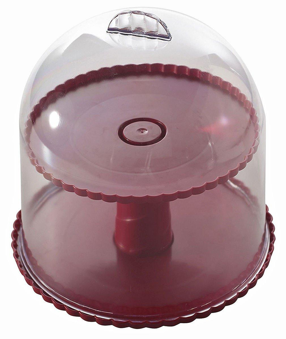 Nordic Ware 2-Tiered Dessert Stand with Dome Lid is a dome-covered 2-tier pedestal to display, store & transport desserts with no hassle. Holds 12 cupcakes or dozens of cookies. This set is BPA & melamine-free. 10”L x 10”W x 10.75”H.