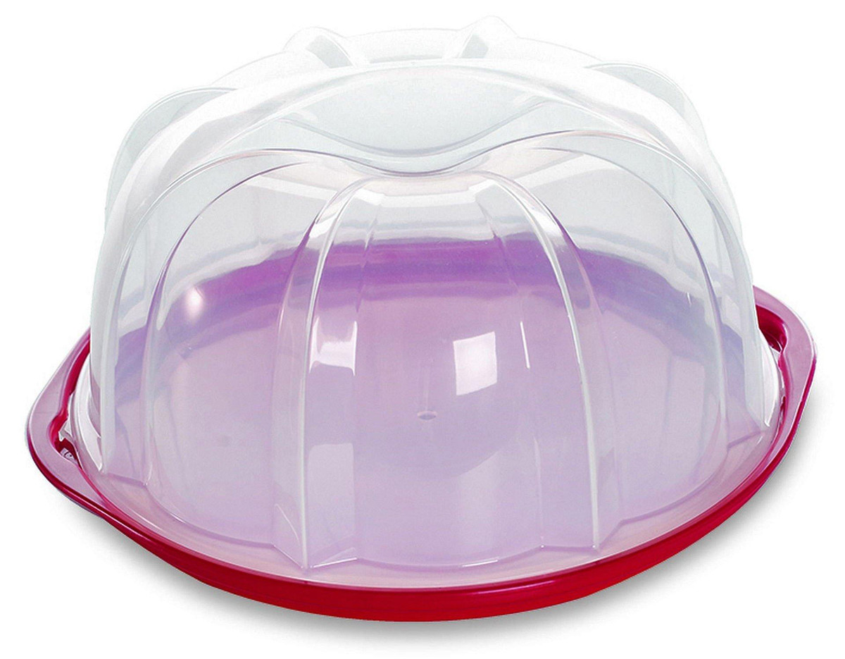 This Nordic Ware Translucent Bundt Cake Keeper lets you store or transport your cakes, pastries & other food items with ease. This new & improved BPA/melamine free polypropelene cake keeper features a translucent lid with colored twist-to-lock base. 10.5”L x 10.5”W x 6”H.
