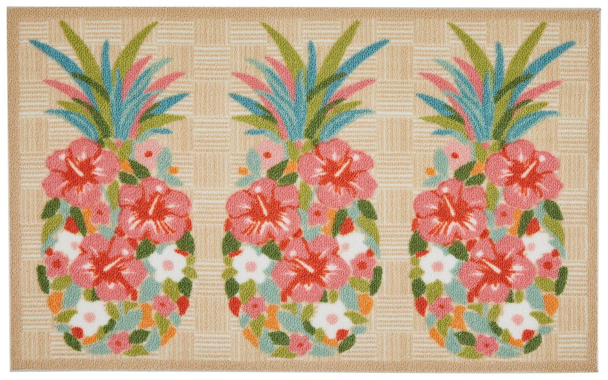 Elevate your home decor with the 20×32 Hibiscus Pineapple Accent Rug. Made from 100% polyester, this rug features a vibrant tropical hibiscus pineapple design that brings a splash of island paradise to any room. Its durable and soft texture ensures comfort and longevity, making it perfect for high-traffic areas. Ideal for adding a touch of tropical flair, this accent rug is a stylish and functional addition to your living space.