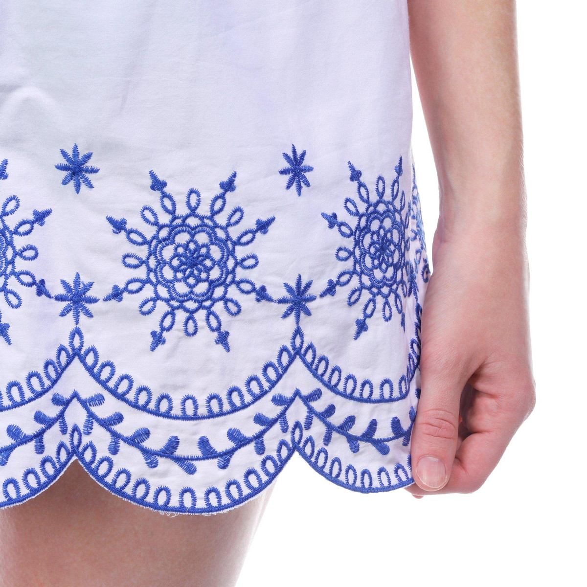 Add a touch of charm with the Womens Embroidered Scalloped Shorts. Featuring a stylish embroidered design, scalloped hem, elastic waistband, and side seam pockets, these shorts offer a breezy 3-inch inseam. Fabrication is 100% cotton.