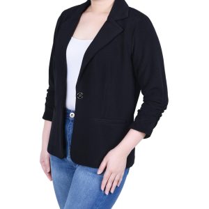 NY Collection Petite 3/4 Sleeve Knit Ottoman Jacket