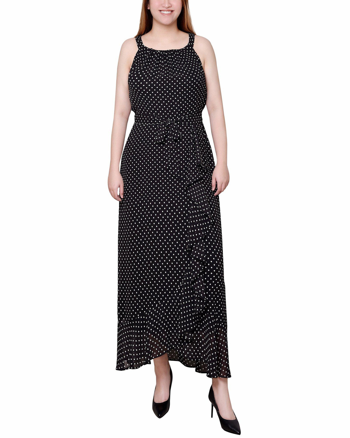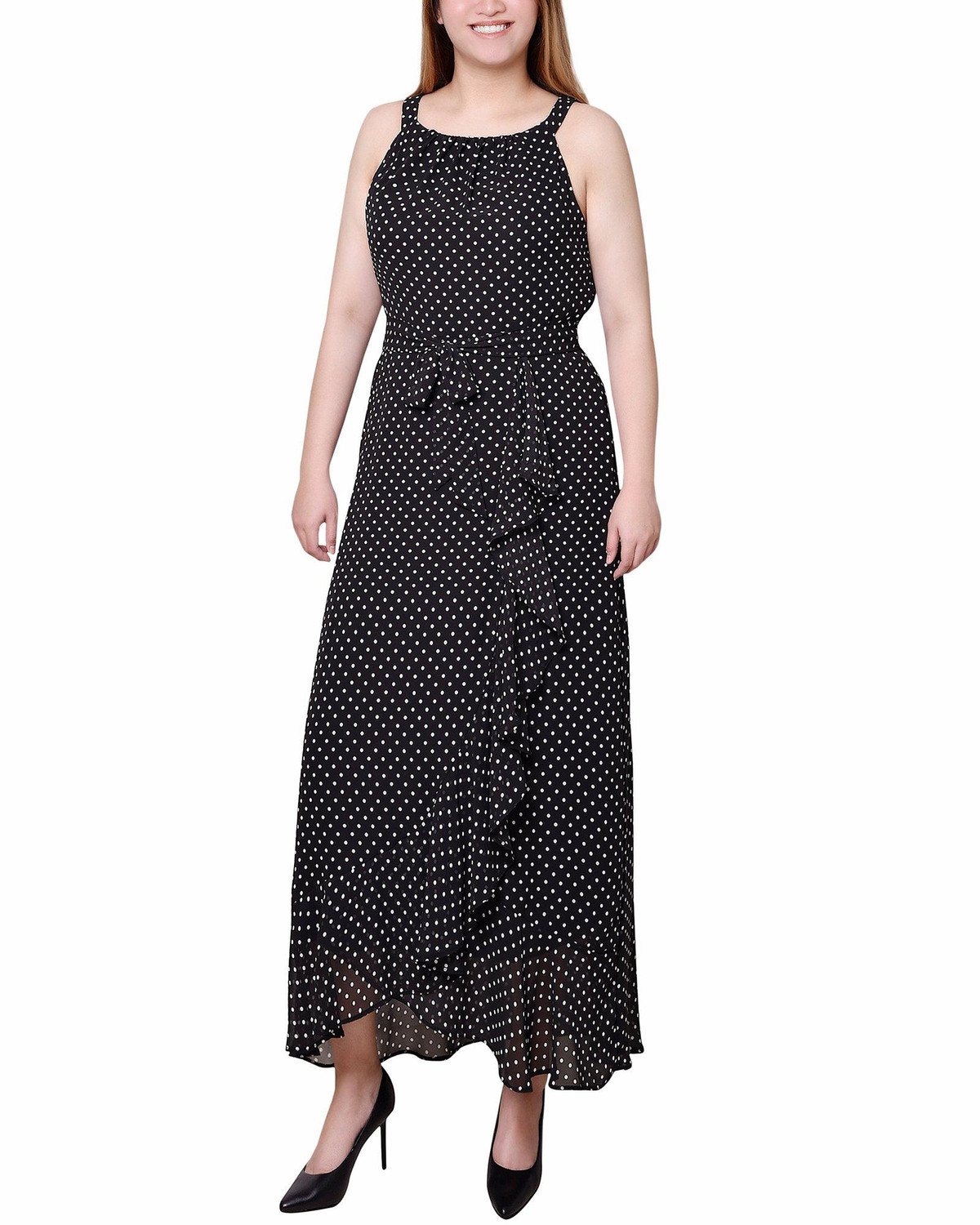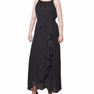 Turn heads at your next event with this elegant chiffon maxi dress. Featuring a sophisticated Grecian halter neckline, this sleeveless dress is designed for a party or special night out. The back zipper ensures a seamless fit, while the belt accentuates your waist. Fully lined for comfort, this dress combines elegance and sophistication, making it the perfect choice for any memorable occasion. Length 55 in. Fabrication 100% polyester.