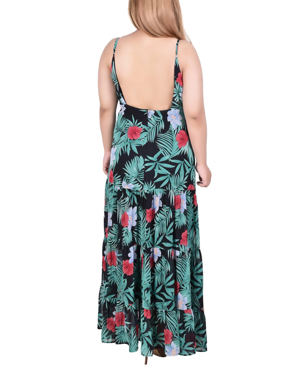 Bring vacation vibes wherever you go with this NY Collection maxi spaghetti strap tiered dress.