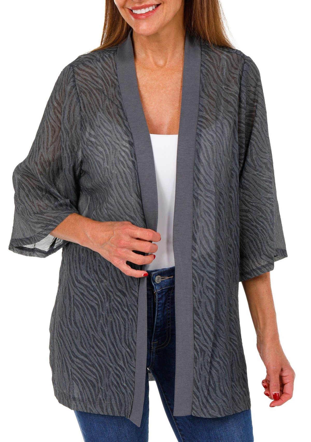 This women’s open front cardigan features a light and breezy material with an embossed texture. Its’ elegant design adds a soft layer of style and comfort, perfect for transitional weather or indoor wear. Fabrication 100% polyester