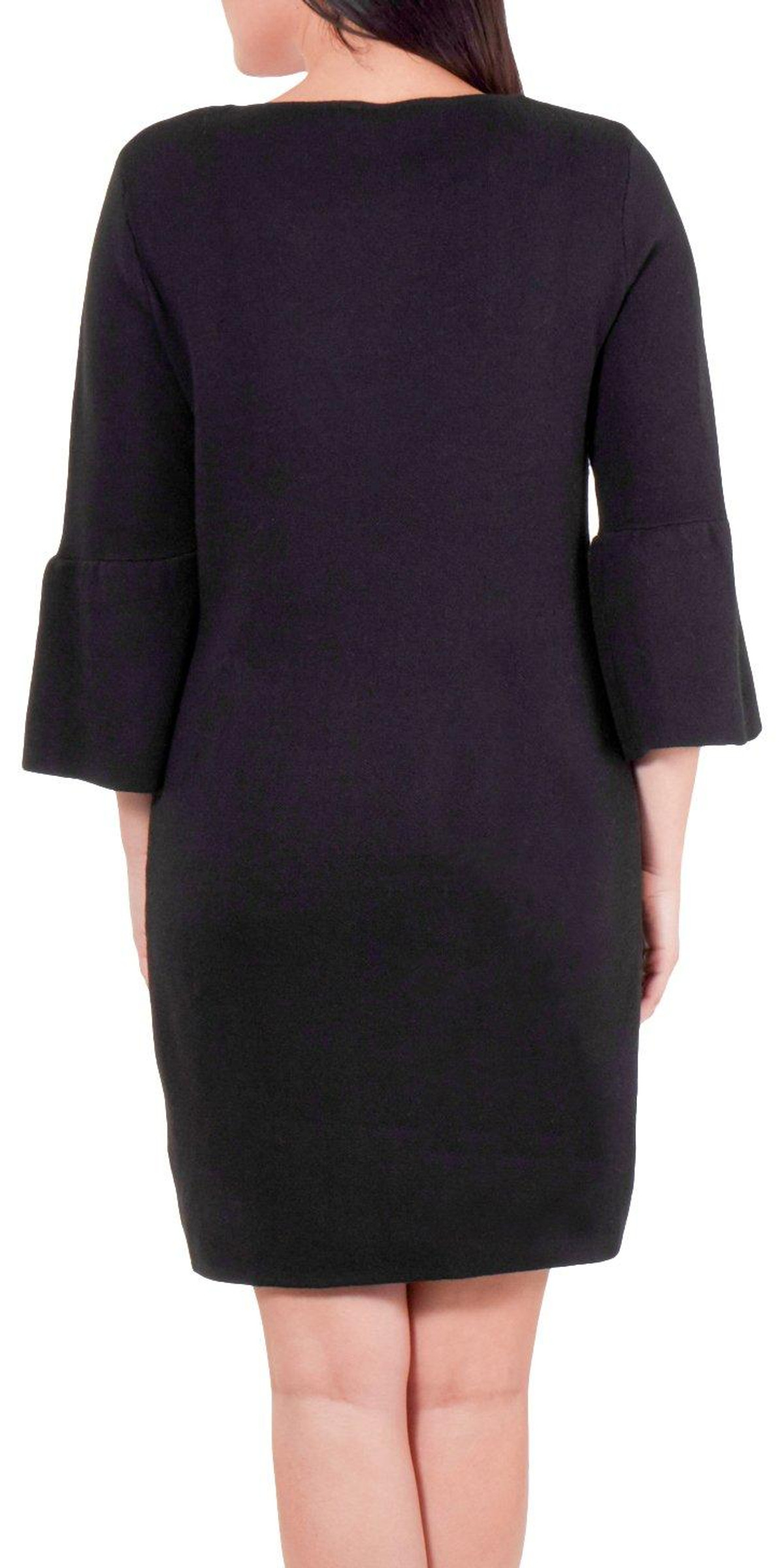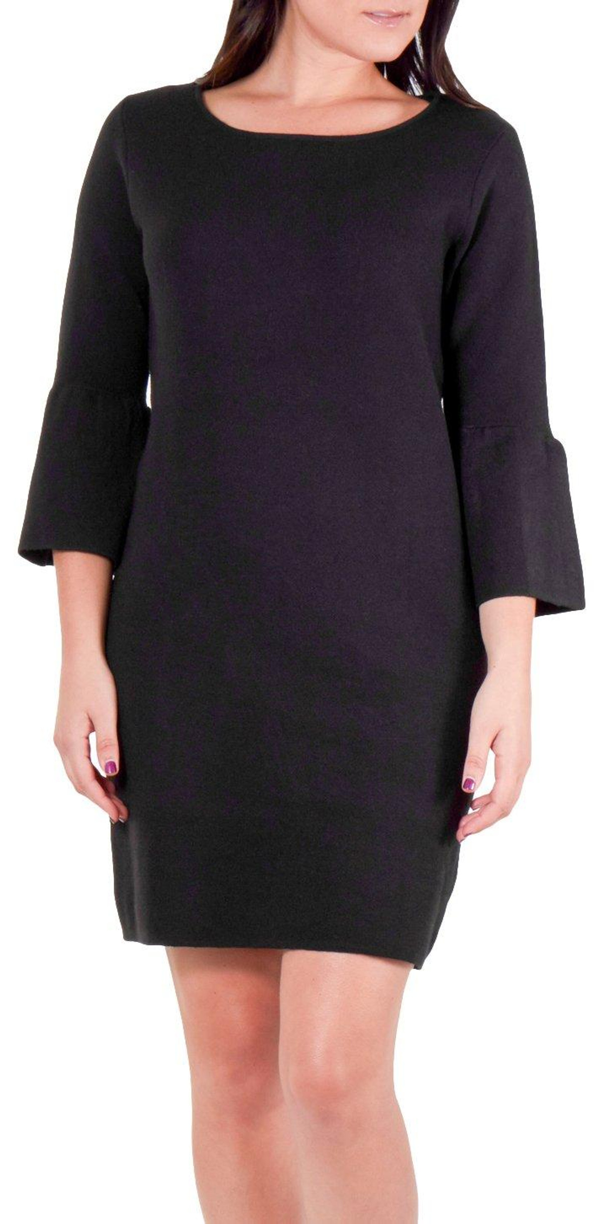 NY Collection brings a comfortable and stylish look to your wardrobe. A chic solid knit is charmed with shirred bell sleeves lending feminine appeal to this sweater dress. Length is approximately 36 inches from size medium.