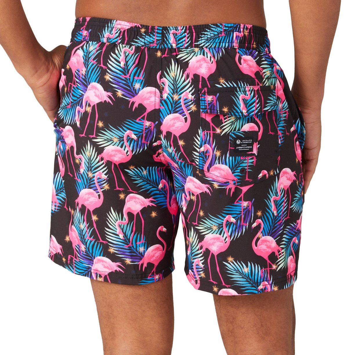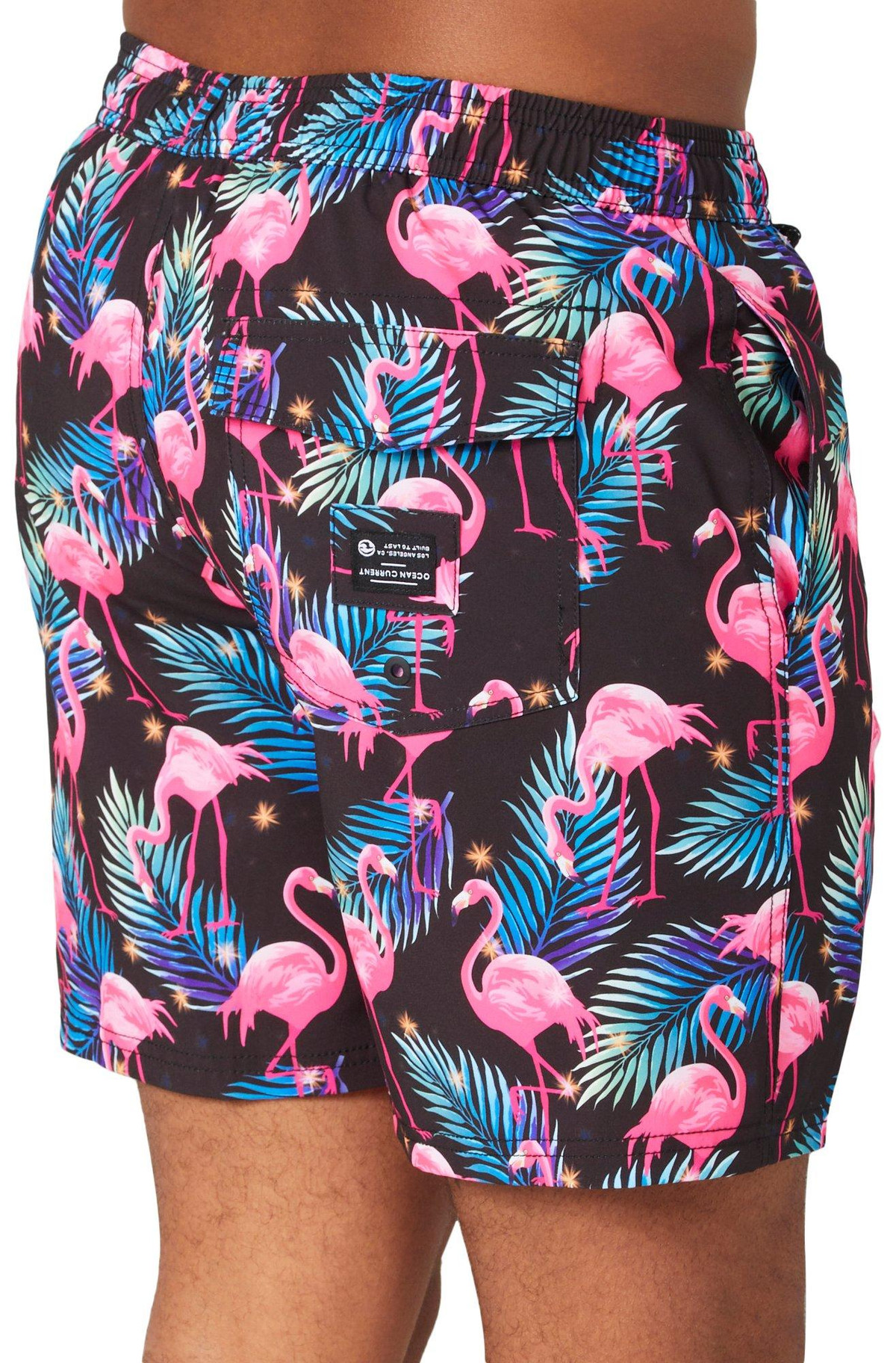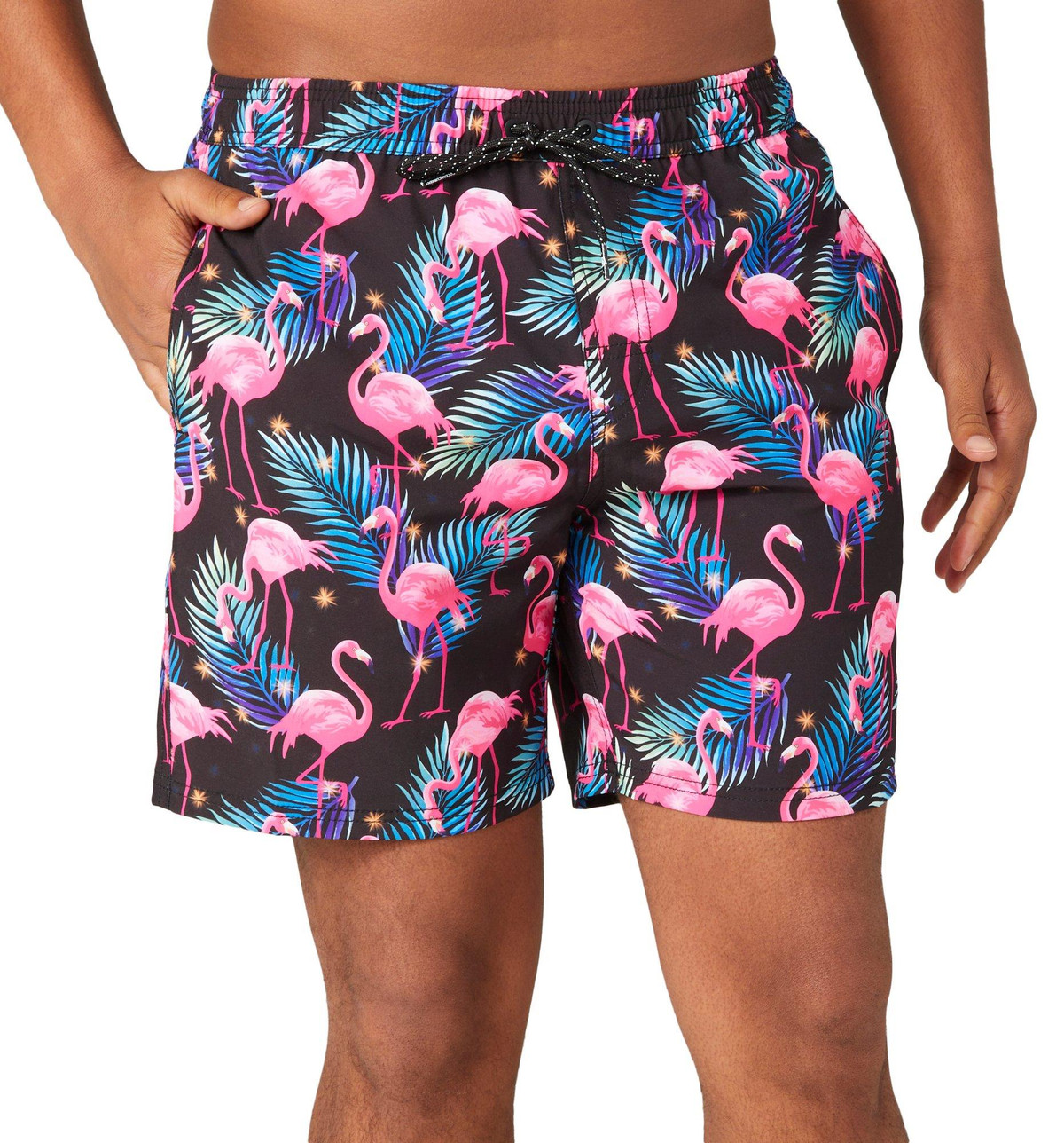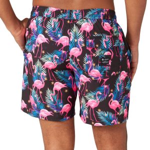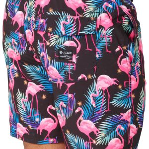 Introducing the Men’s Flamingo Volley Swim Trunks, a perfect blend of polyester and spandex for comfort and flexibility. These vibrant trunks feature a playful flamingo print, making them a standout choice for beach or poolside fun. The drawstring waistband ensures a secure fit, while side pockets and one back pocket offer practical storage. With a 6-inch inseam, these swim trunks provide a modern, stylish look thats ideal for any aquatic adventure.