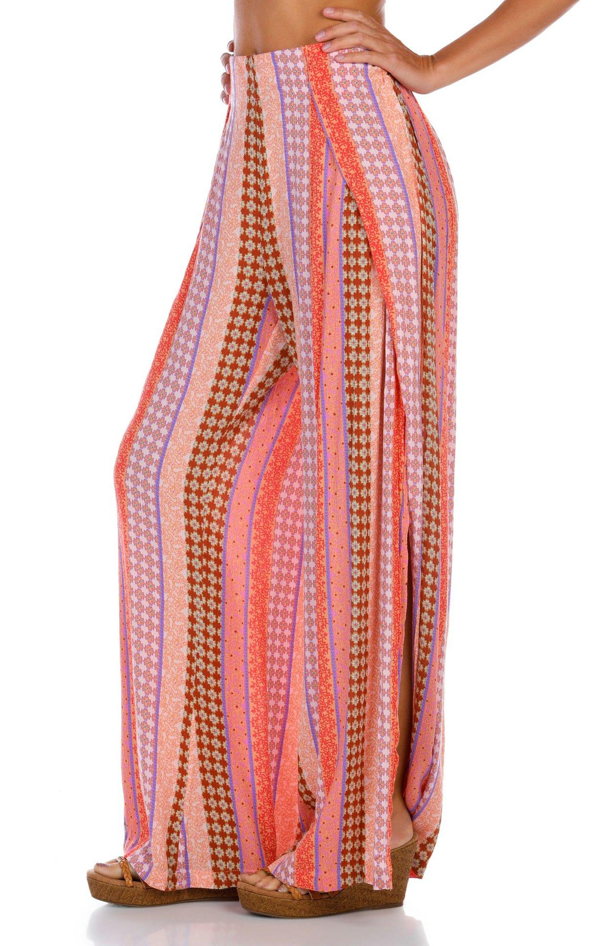 Embrace boho vibes with the Juniors Spirit Split Wide Leg Pants, featuring a bold print, breezy 32-inch inseam, and dramatic leg slits. The flowy wide-leg fit and pull-on waistband offer effortless comfort and standout style for sunny days and festival nights. Fabrication 100% viscose