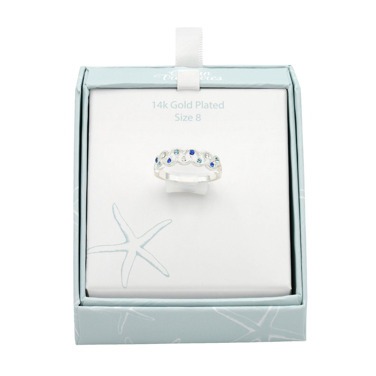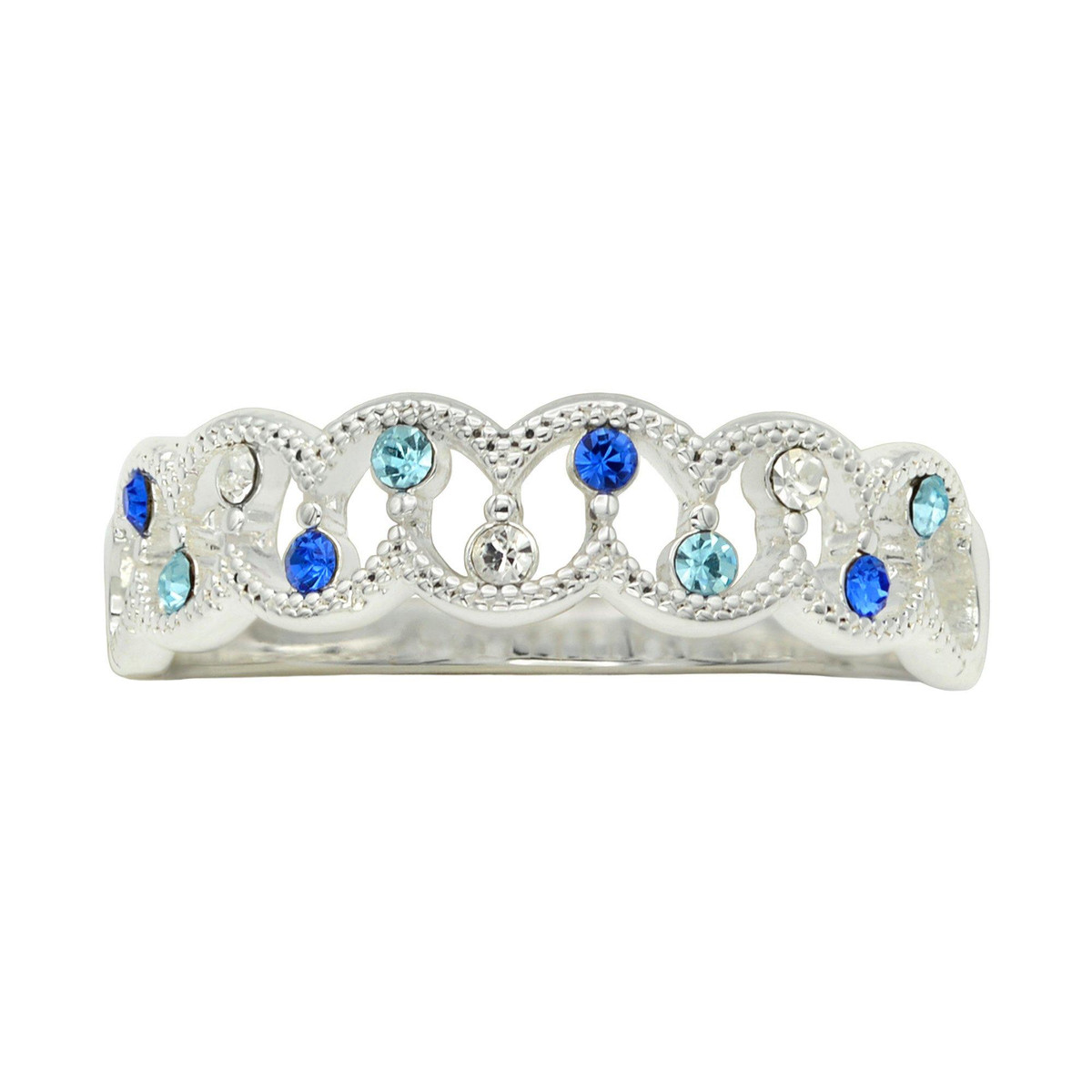 This elegant silver-plated band features a stunning mix of blue and clear stones for a subtle pop of color and sparkle. Perfect for stacking or wearing solo, and beautifully boxed for easy gifting.