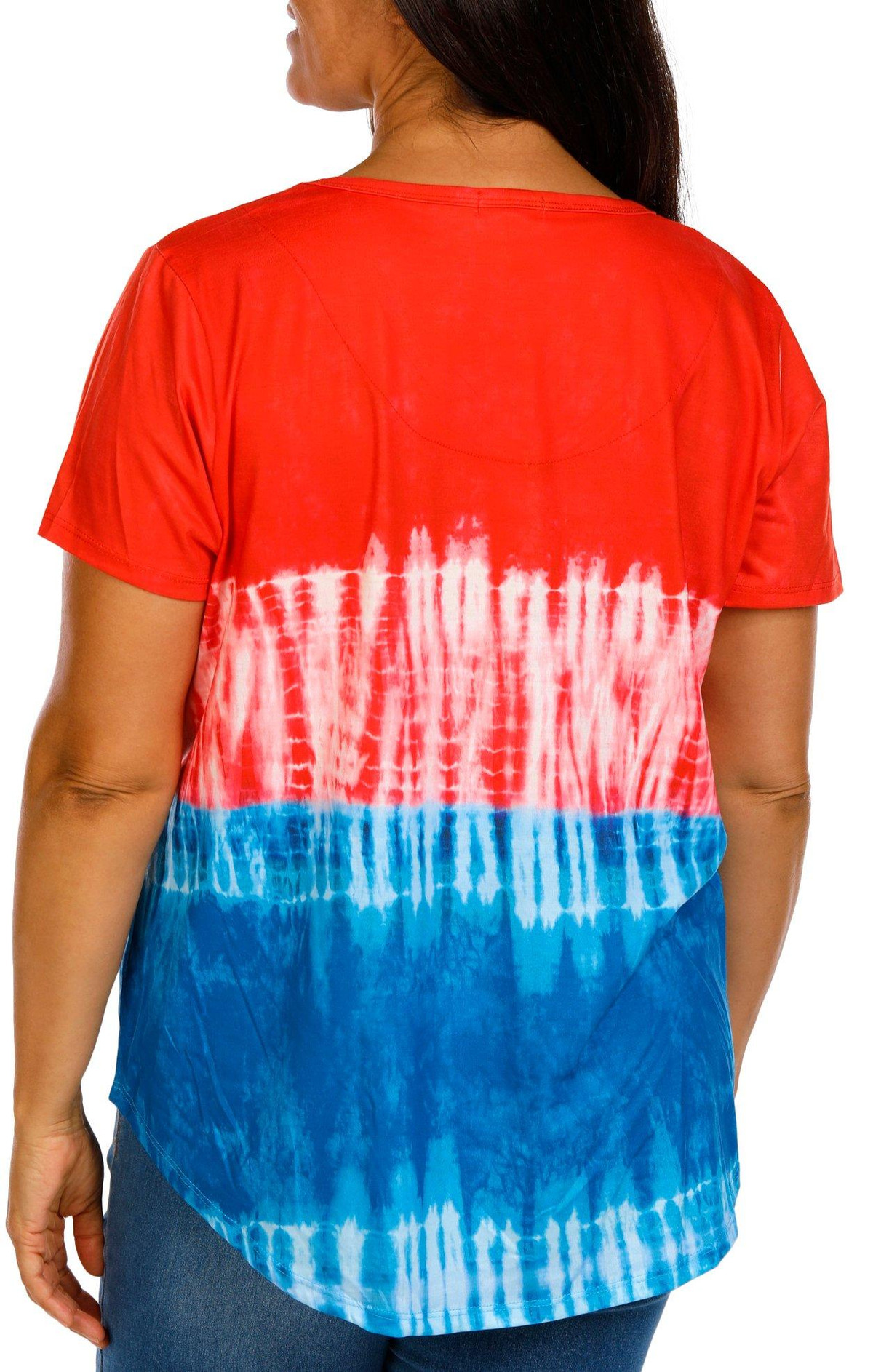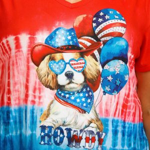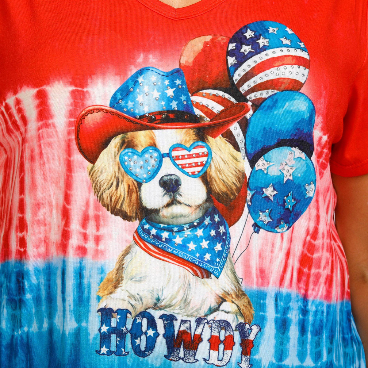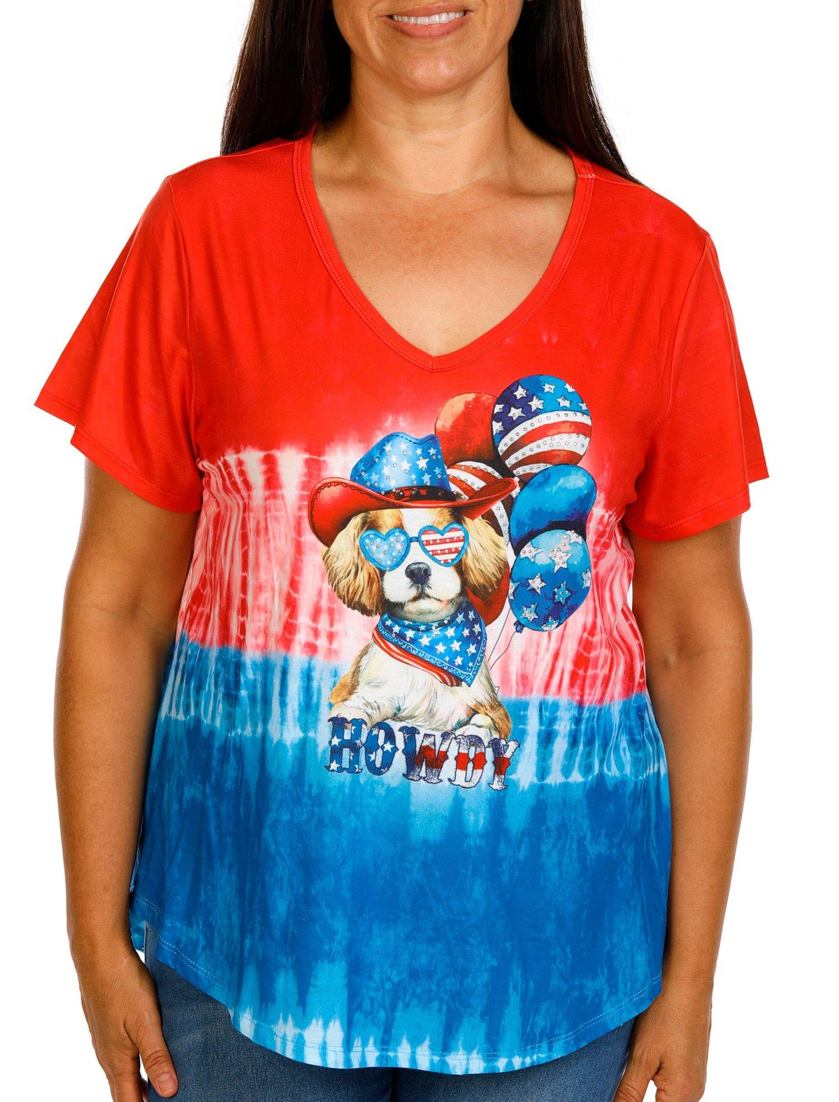 Show off your patriotic spirit with this plus size top featuring a playful Americana dog graphic. The soft fabric and v neckline offer all day comfort while the short sleeves make it perfect for warm weather celebrations. Fabrication 95% polyester, 5% spandex