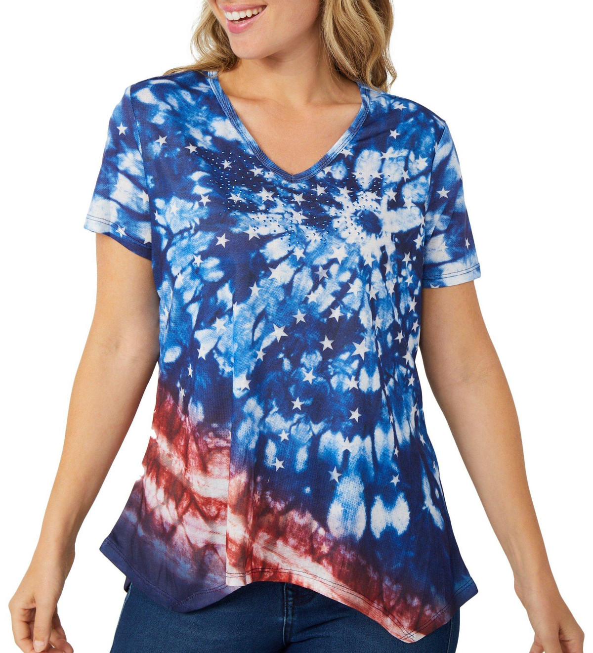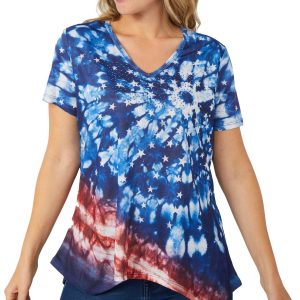 OneWorld Petite Embellished Printed Short Sleeve Top