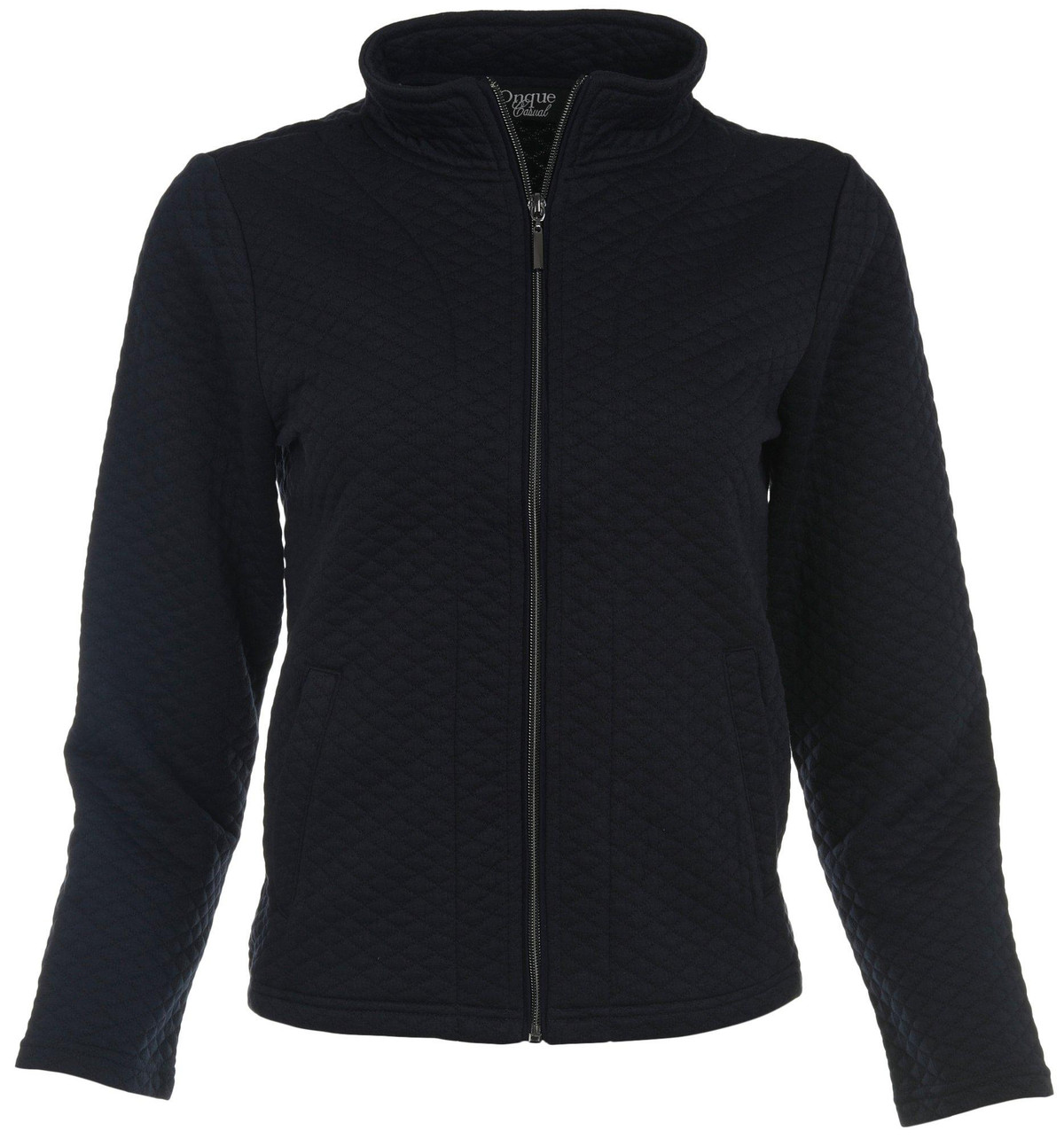 Add a new favorite piece to your wardrobe with this stylish zipped long sleeve jacket! It features a versatile solid-color design on soft fabric, a full zipped front, and double front pockets. Fabrication is 97% polyester and 3% spandex.