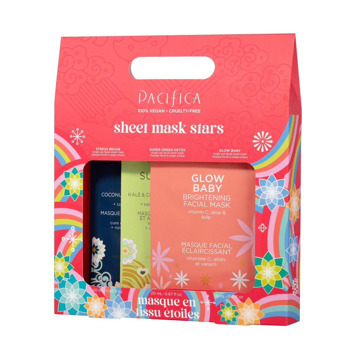 variety sample of skinfirst single-use masks is designed to make luxurious self care accessible and easy to apply anytime, anywhere. Whether theyre an integral part of your routine or a spontaneous treat, try them out for different occasions and desired benefits to discover your new favorite ritual. Includes Glow Baby, Super Green Detox, and Stress Rehab sheet masks. Contain 0.6 Oz each.