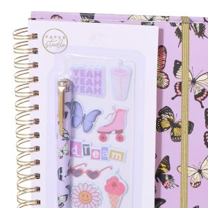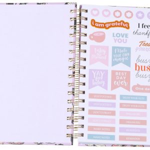 This spiral journal features a charming butterfly design and comes complete with a matching pen and coordinating stickers. Perfect for notes, lists, or journaling, it’s a stylish way to stay inspired and organized. Measures approximately 8.5 in x 6.5 in.