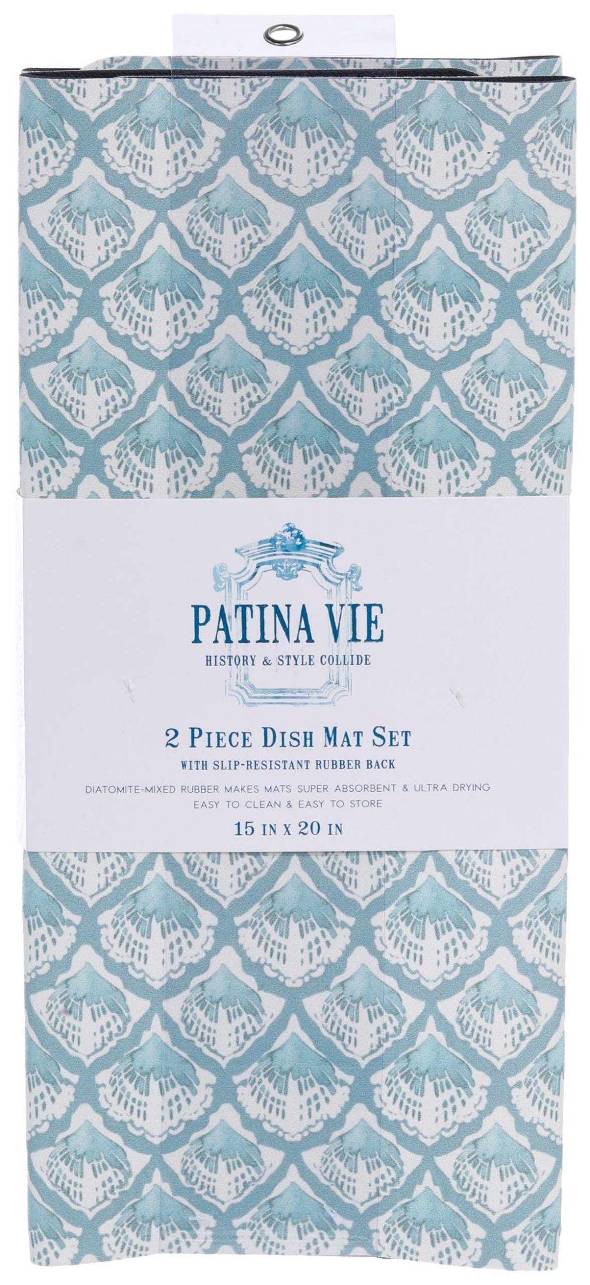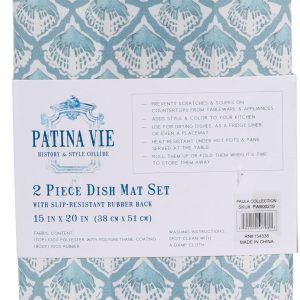 Keep your kitchen dry and tidy with this 2-pack of Blue Scallop Print Dish Mats. Measuring 15×20 inches, each mat features a slip-resistant rubber back, super absorbent material, and ultra-drying performance. Easy to clean and perfect for everyday use.