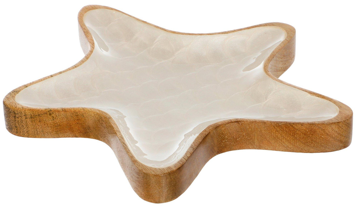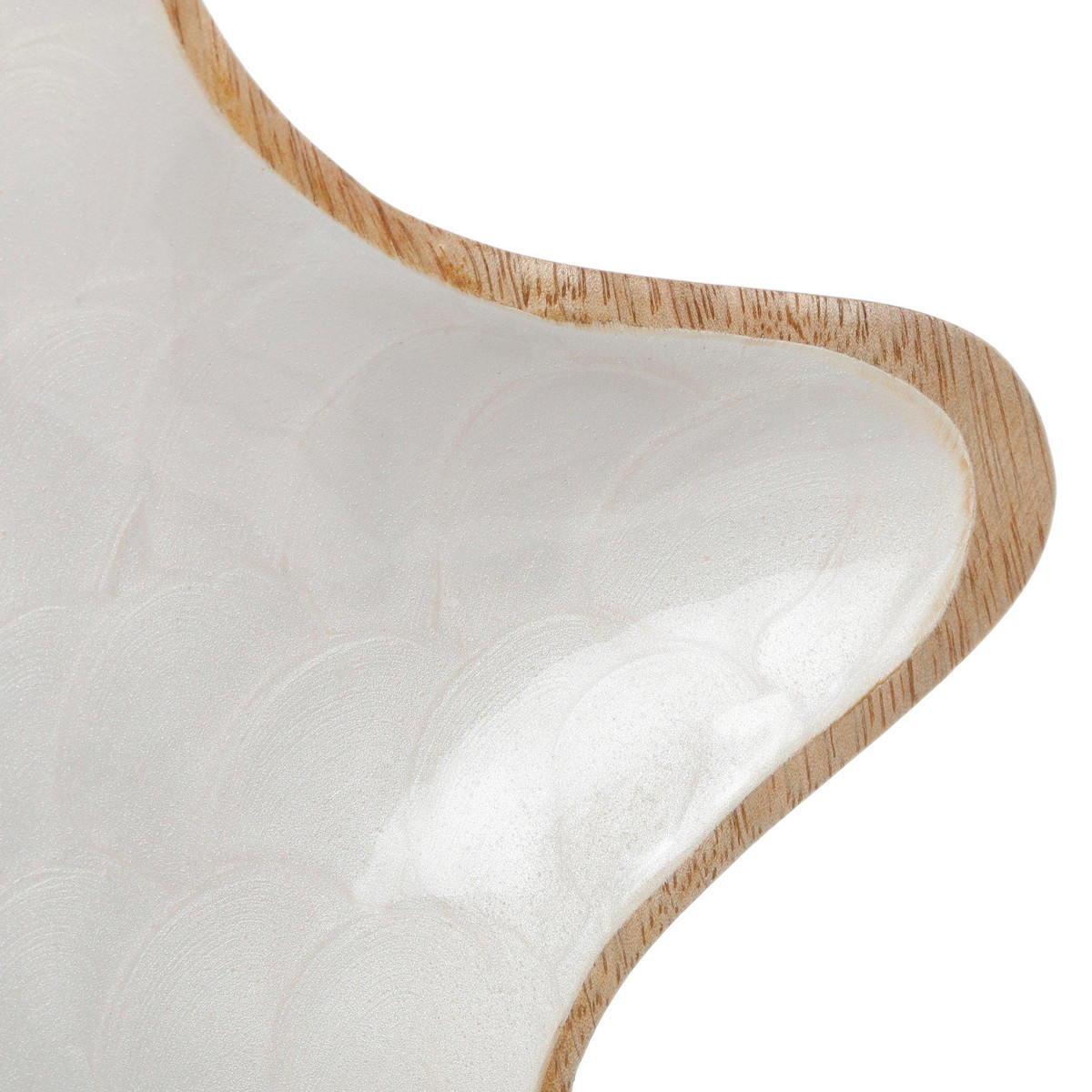Enhance your dining experience with this stunning Scallop Patterned Wood Starfish Plate. Crafted from high-quality, durable wood, its elegant scalloped design adds a touch of sophistication to any table setting. The starfish shape makes it perfect for serving fish, appetizers, amoung others, as this tray combines functionality with timeless style. Whether you’re hosting a dinner party or enjoying a casual meal, its the perfect accent to elevate your presentation. Measures 10 in x 1 in.