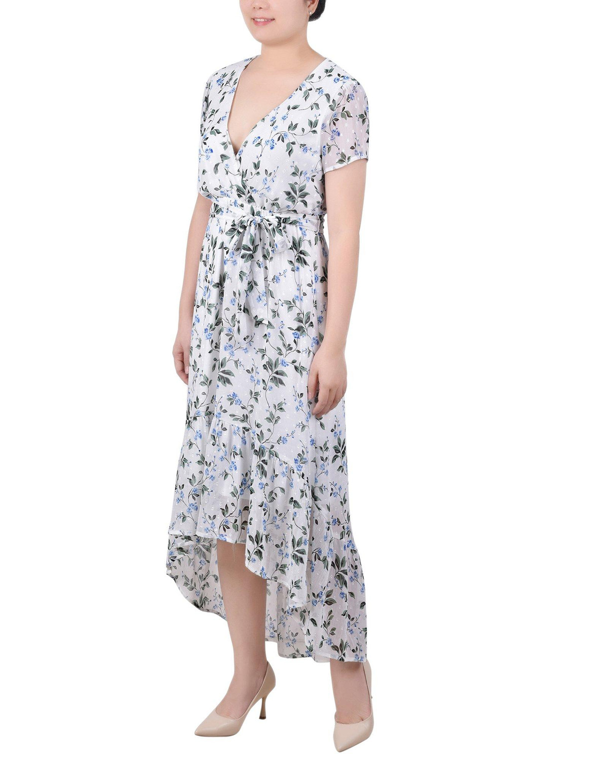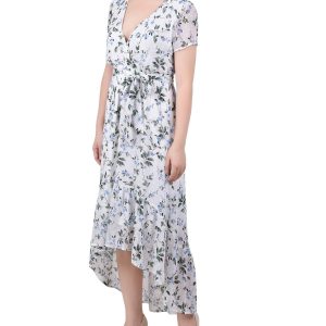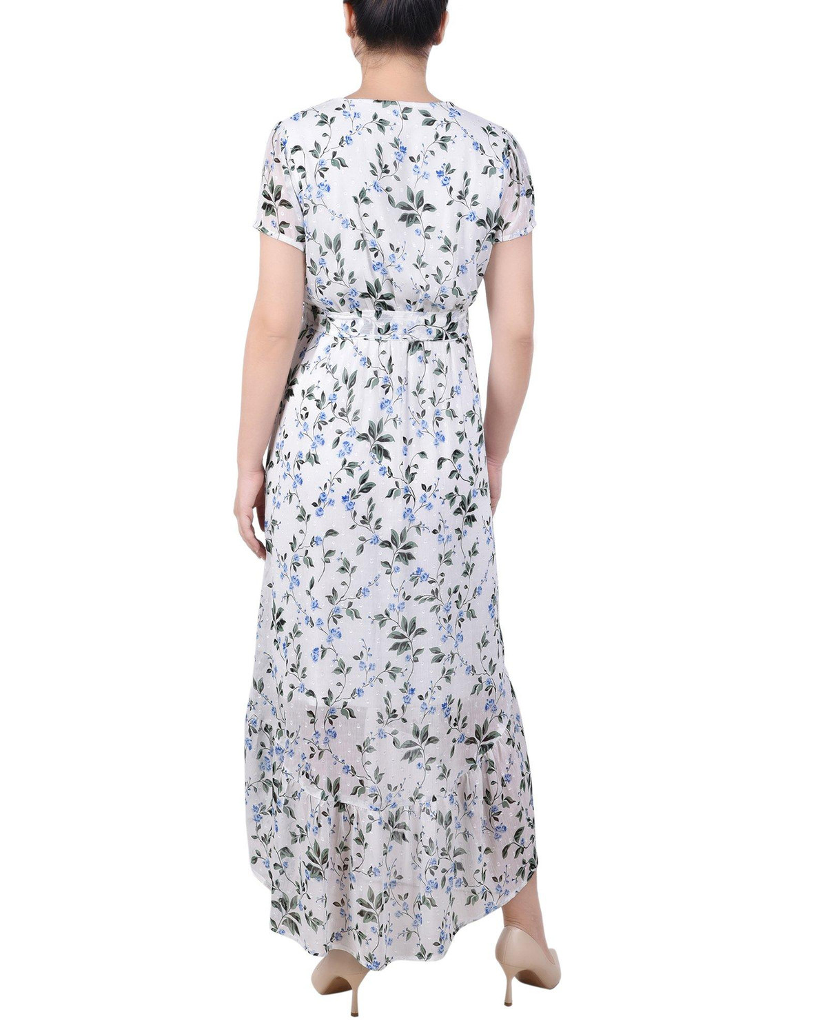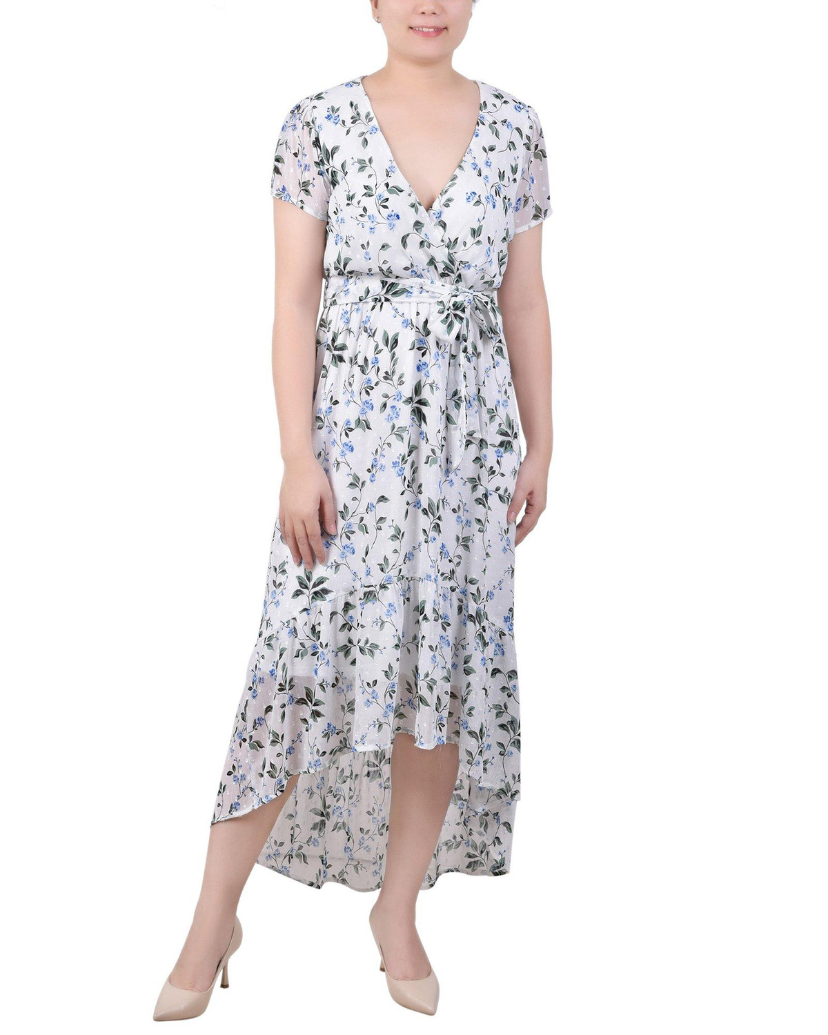 Petite Short Sleeve Hankerchief Hem Chiffon Dress
