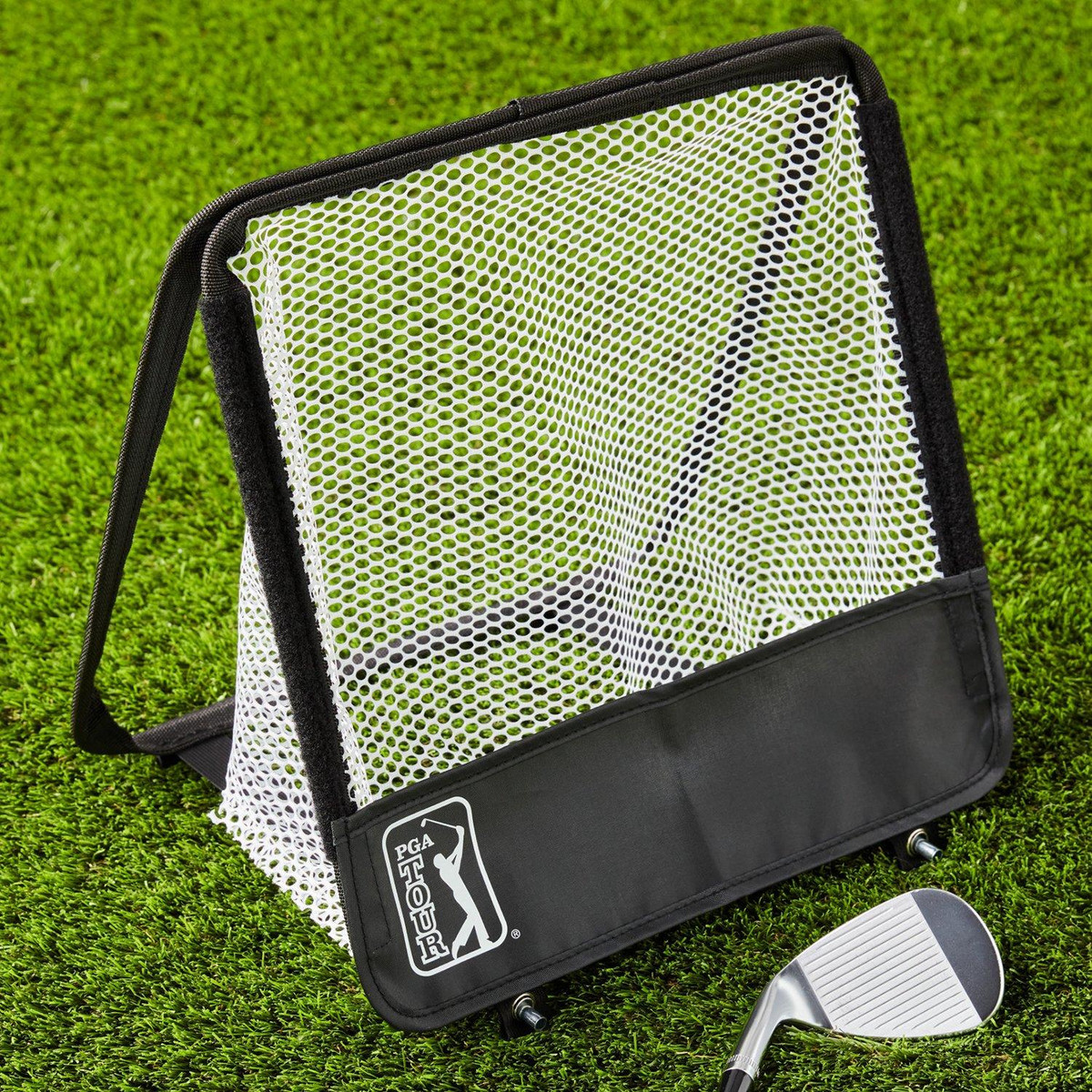 This convenient golf chipping set makes it easy to fit some chipping practice into your schedule. Featuring a portable design, the golf chipping practice game is a great way to work on boosting the accuracy of your chip shots in the backyard or any other open space. Measures 13.86 in x 13.86 in x 1.22 in.