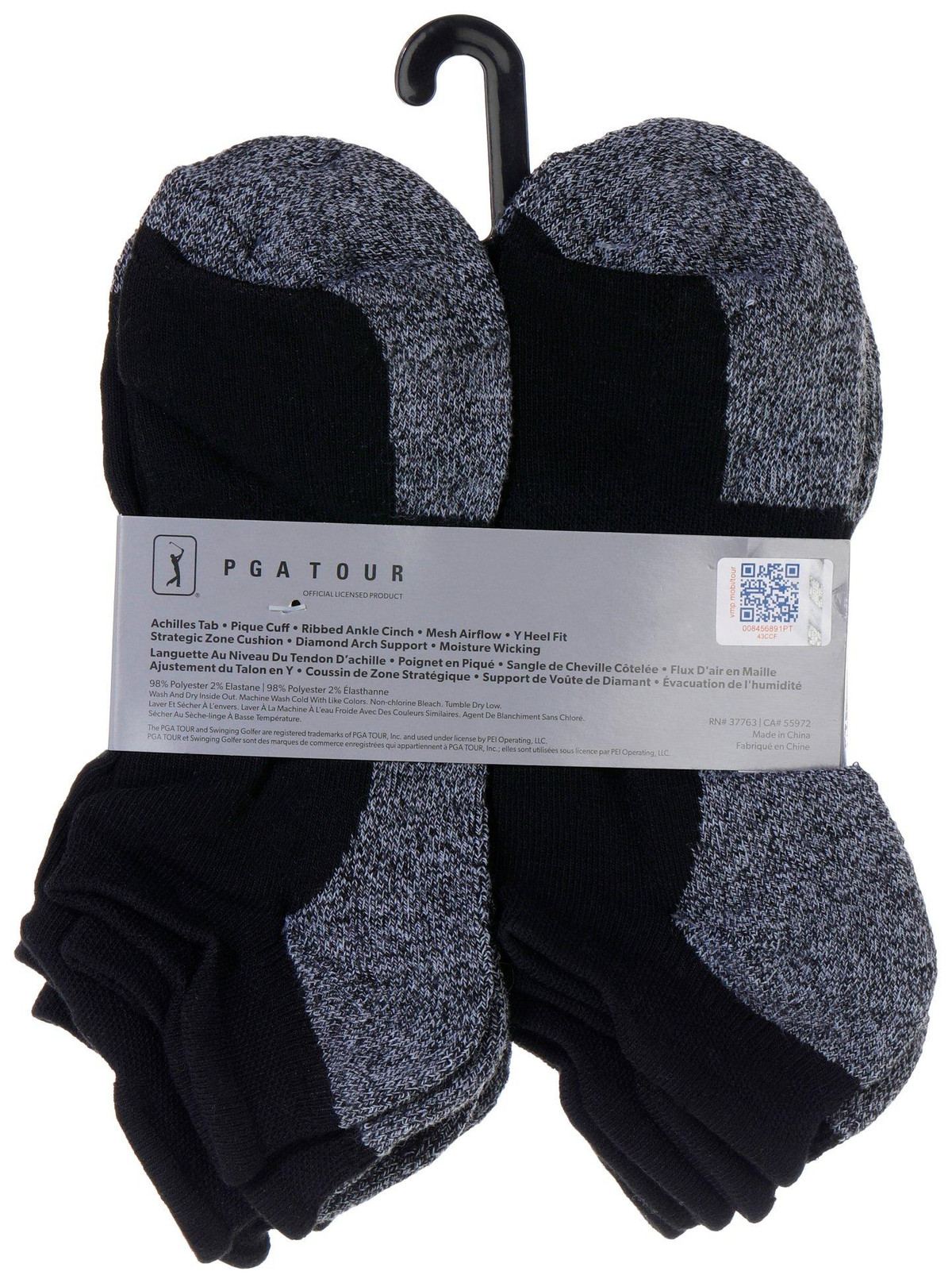 Designed for performance on and off the course, these low-cut socks deliver comfort, support, and breathability. Made from a sustainable blend of 98% polyester, and 2% elastane, theyre perfect for golf, workouts, or casual wear. Moisture-wicking mesh and airflow zones to keep feet dry. Strategic cushioning for all-day comfort. One size fits mens shoe sizes 712
