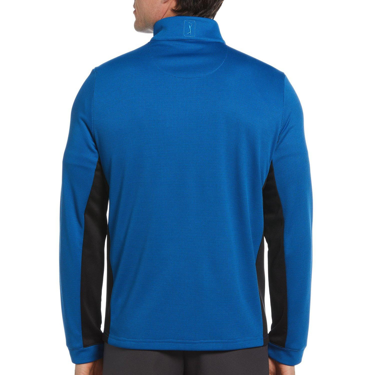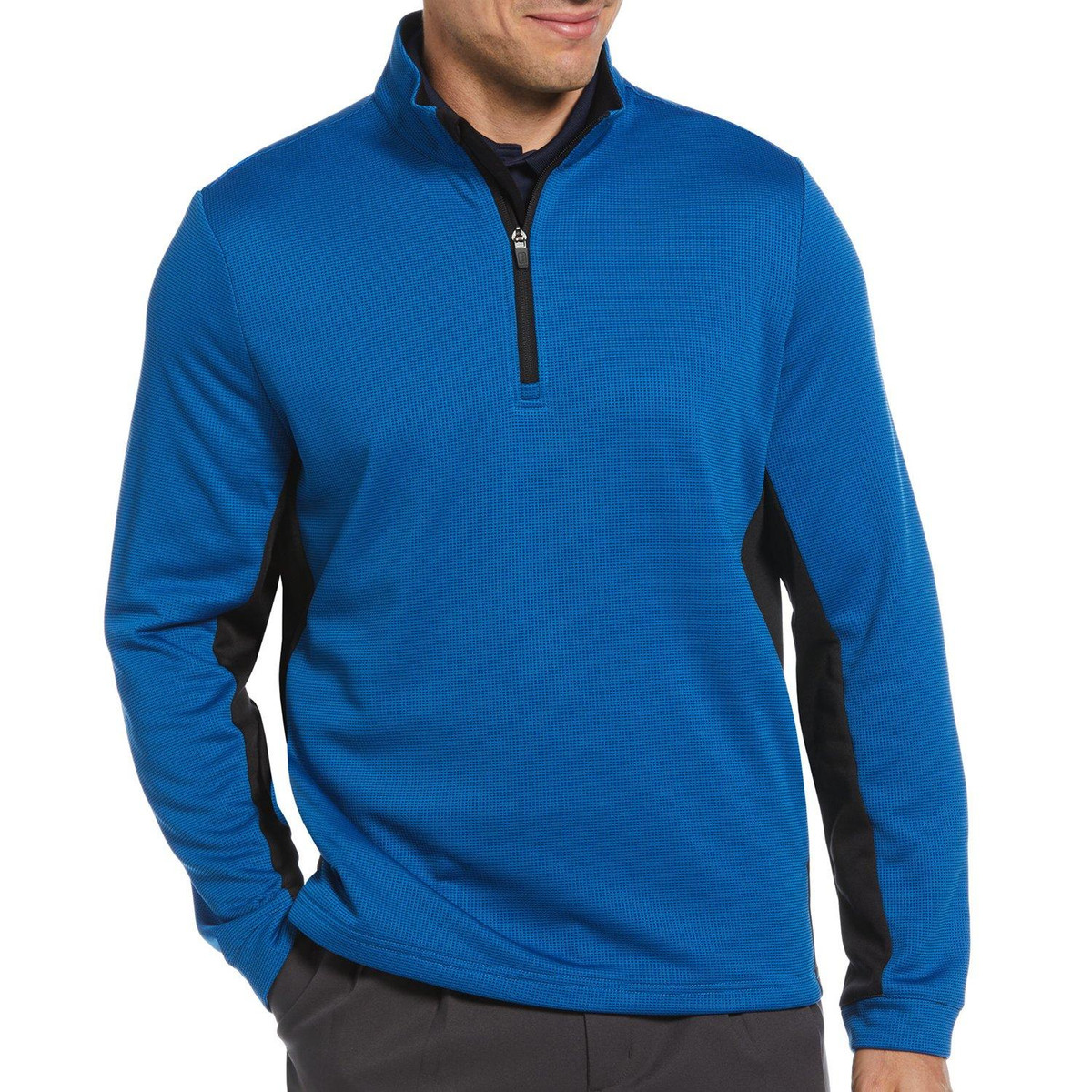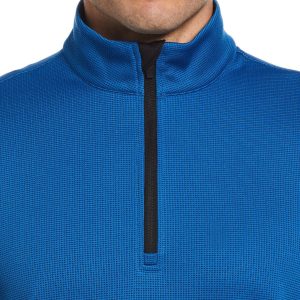 Don’t let cold weather keep you from the course in this comfortable and versatile quarter-zip jacket! It has a micro jacquard pattern for a sophisticated, modern look. Ideal for layering over your athletic attire, it is crafted with a lightweight single knit material.