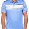 Gear up for the golf course in this polo. This golf polo provides a three button placket detail, UPF 50 sun protection, and moisture wicking properties. Fabrication is 92% polyester and 8% elastane.