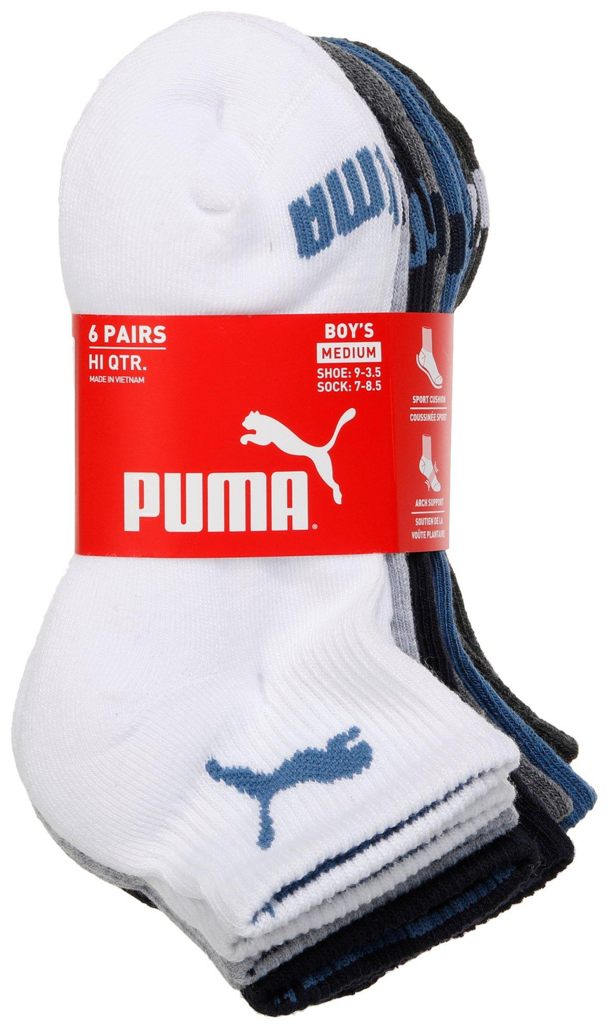 Ensure your childs feet stay comfortable and supported with the 6 Pack of Boys High Quarter Crew Socks. Designed with sport cushion and arch support, these socks provide the perfect blend of comfort and functionality. The high quarter length offers extra coverage, while the durable fabric ensures long-lasting wear.