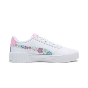 Bring out their colorful side in the Carina 3.0 Flower Power sneaker from Puma. The bright floral detailing catches the eye, while SoftFoam+ cushioning provides soft support underfoot to round out this style. Features synthetic upper, lace-up closure, round perforated toe, padded collar, mesh fabric lining and rubber sole.