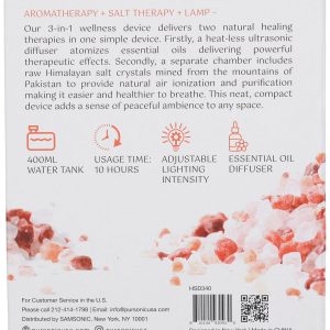 Enhance your environment with the 3-in-1 Himalayan Salt Lamp Diffuser. Combining aromatherapy, salt therapy, and ambient lighting, it features a 400 ml water tank and adjustable light intensity for a customized experience. Functions as an essential oil diffuser with up to 10 hours of continuous use. Ideal for relaxation, wellness routines, or home decor.