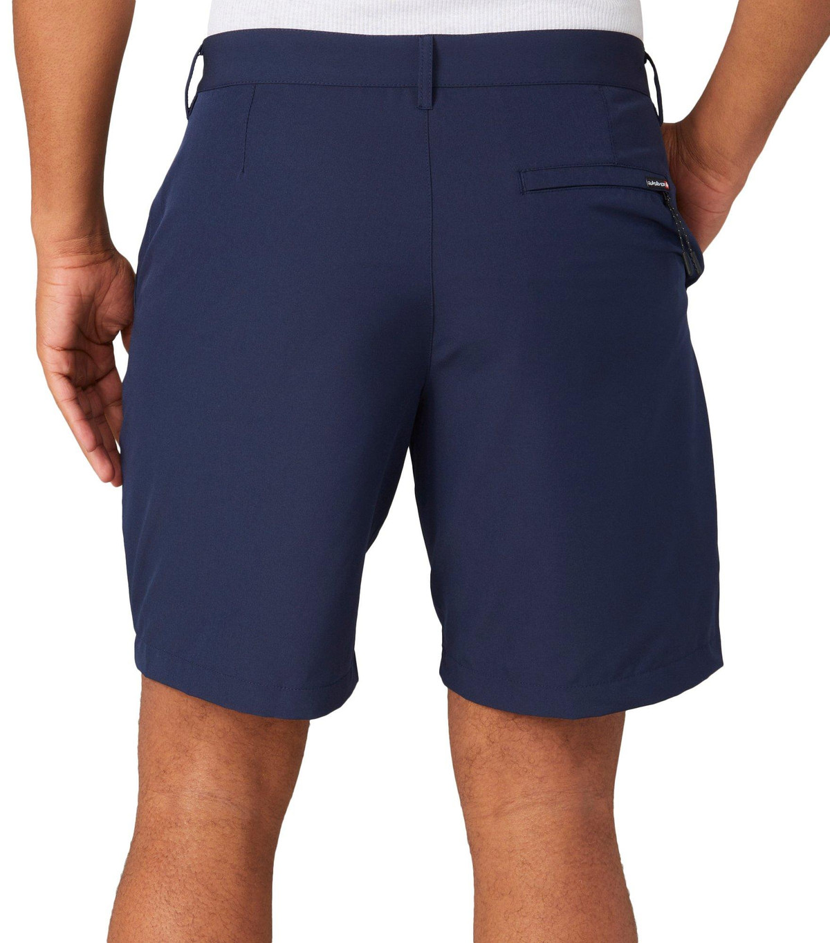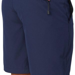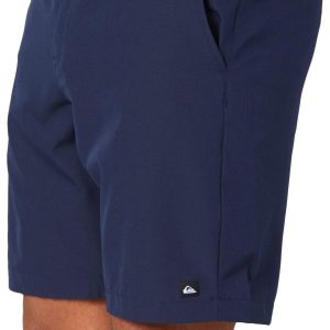 These union amphibian surf shorts feature anti-rash free stretch fabric, solid color design for easy matching, one button thru back pocket, one zip closure back pocket, hyper dry fast drying time, button-fly and zip closure, and regular fit. Outseam measures approximately 21 inches above the knee. Fabrication is 92% polyester, 8% elastane.