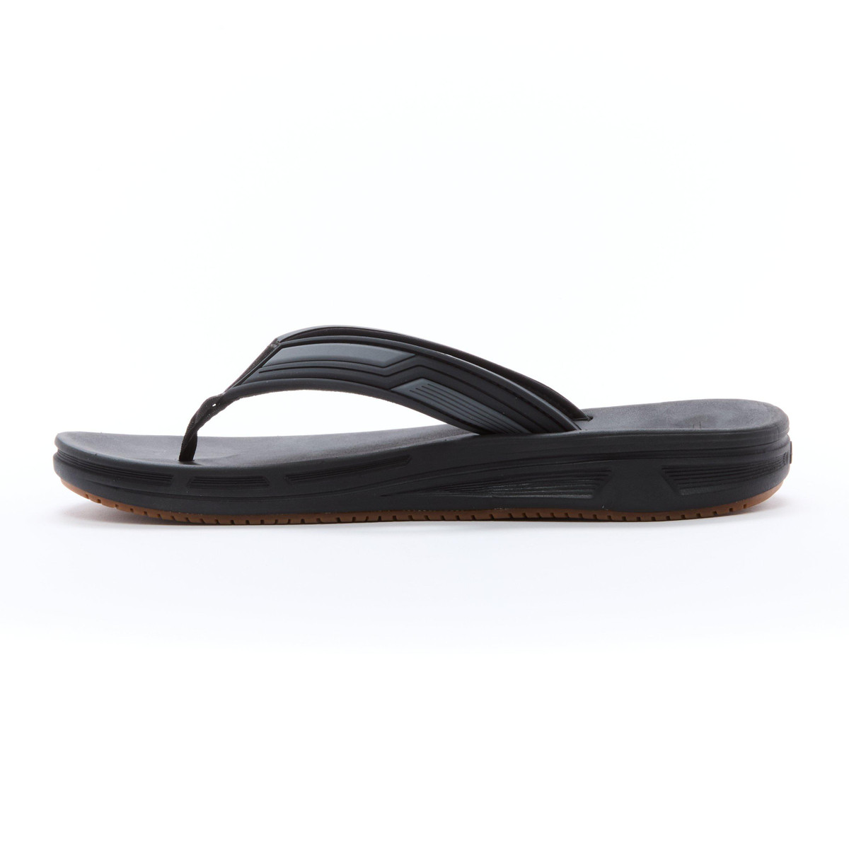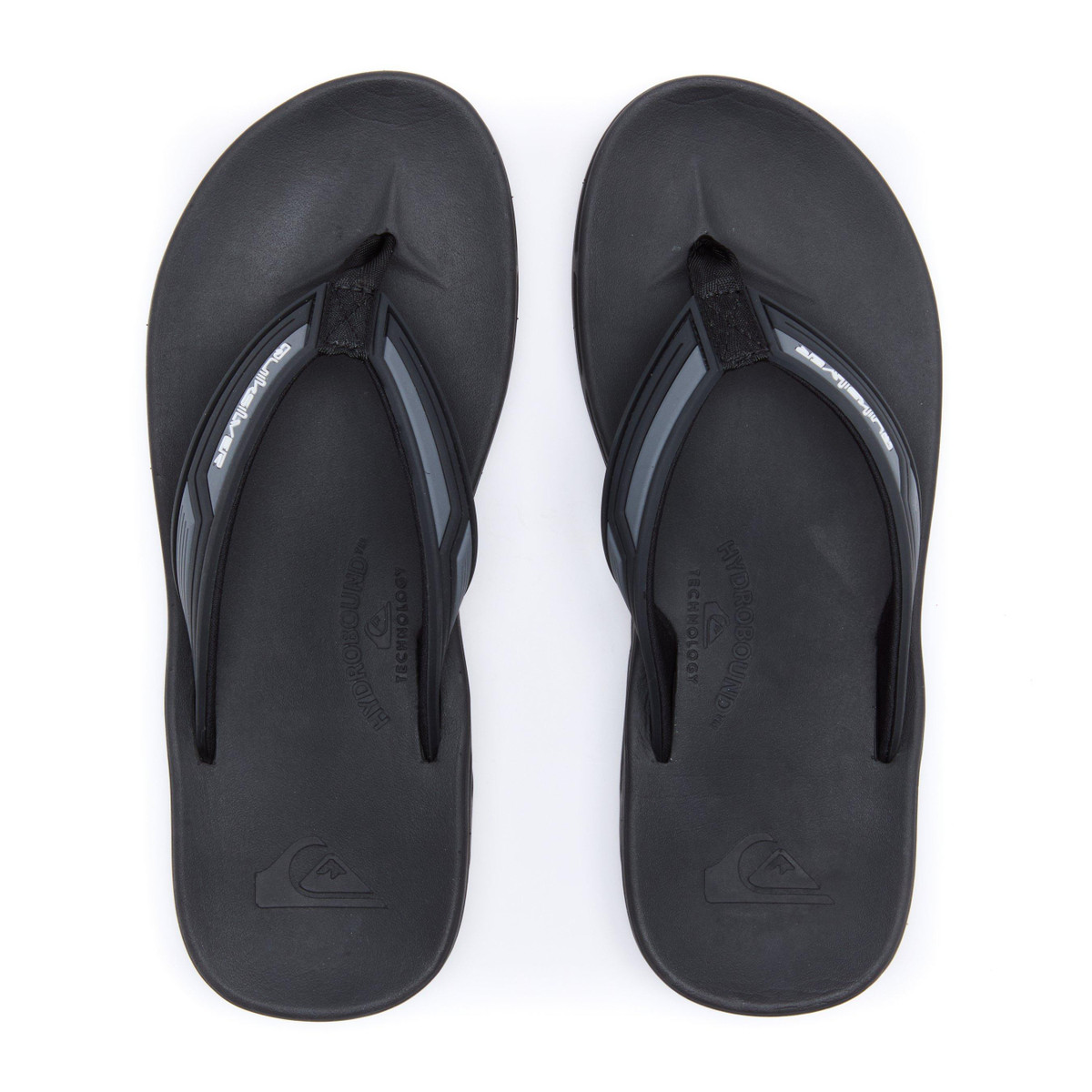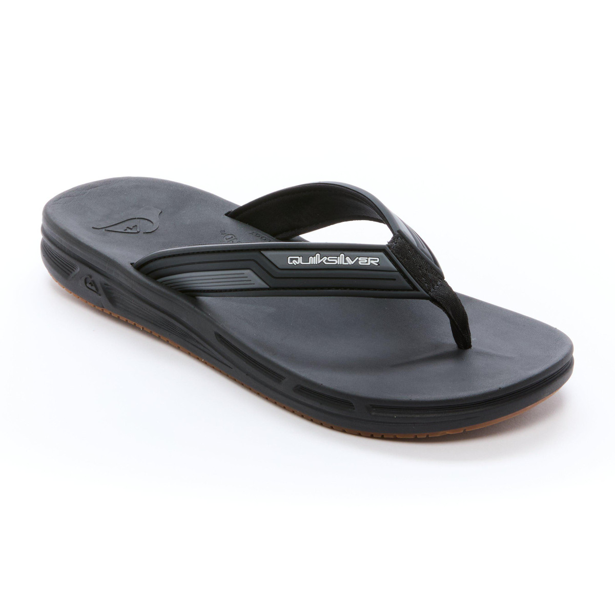 Quiksilver Makua Deluxe Flip Flops. These flip flops offer a blend of comfort, durability, and style designed for everyday wear. Featuring durable rubber and nylon straps with a soft woven toe post, these sandals provide a secure and comfortable fit. The molded EVA footbed is powered by Hydrobound Technology for superior cushioning and support, making them ideal for long days on your feet.