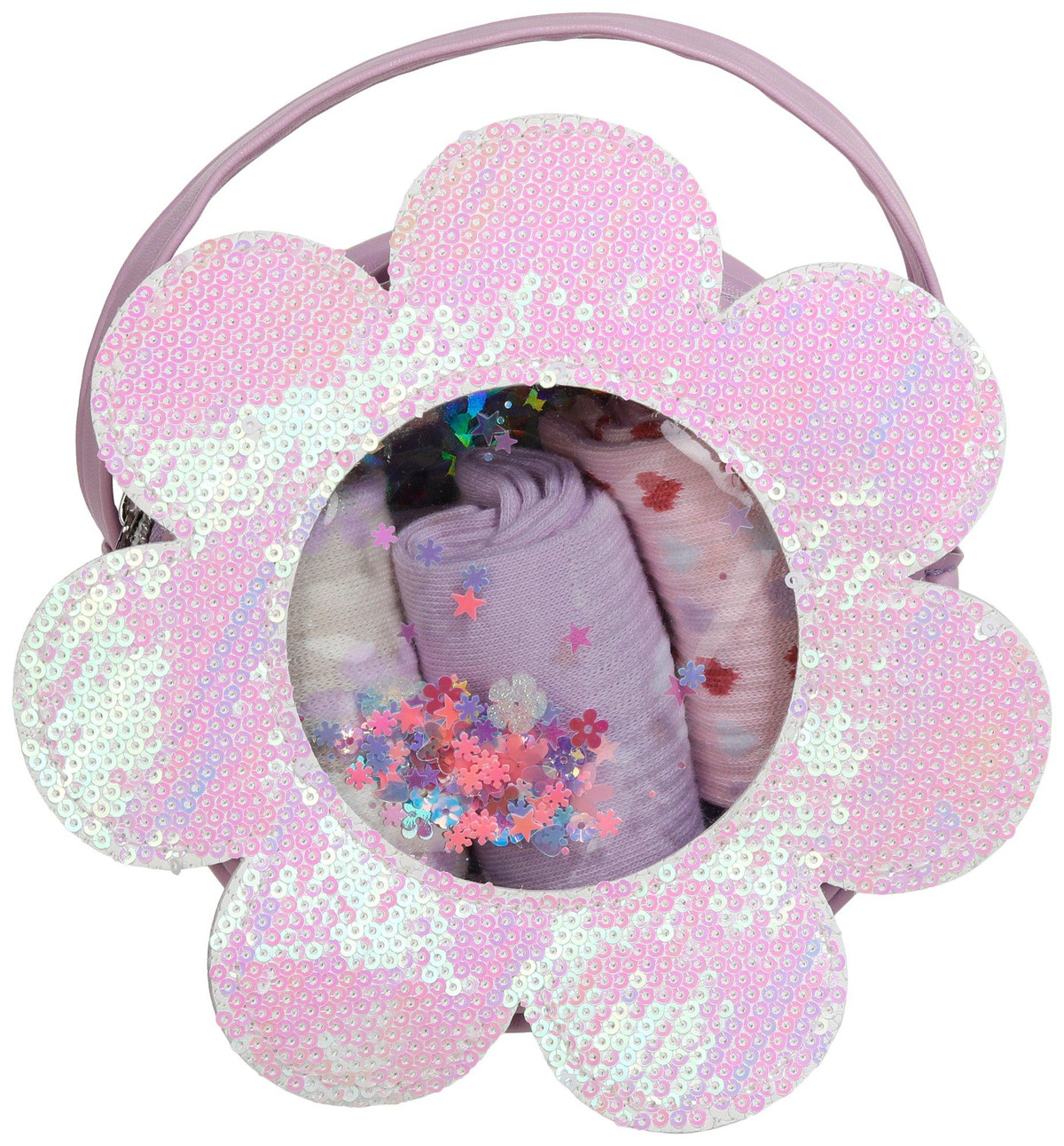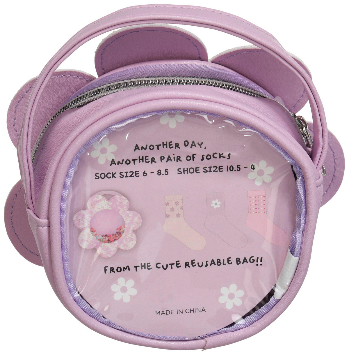 Keep your feet cozy and stylish with the Girls 4 Pc Mid Crew Socks Set. Made from a soft blend of polyester and spandex, these socks offer comfort and durability. Featuring assorted colors, they add a fun touch to any outfit. The set includes a flower-shaped sequin zip case, perfect for keeping your socks organized. Designed to fit shoe sizes 10.5-4, these mid-crew socks are ideal for everyday wear. Enjoy the perfect combination of style and practicality with this charming sock set.