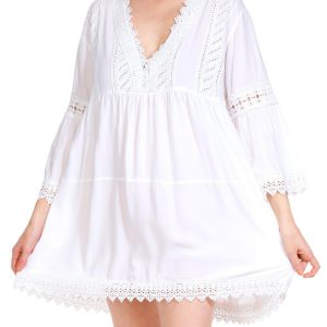 Elevate your beachwear with this elegant Women’s 3/4 Sleeve Lace Swim Coverup, designed for comfort and effortless style. Made from soft, breathable cotton, this coverup features a delicate lace pattern that adds a touch of sophistication to your swimwear ensemble.
