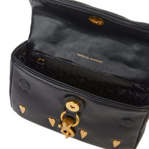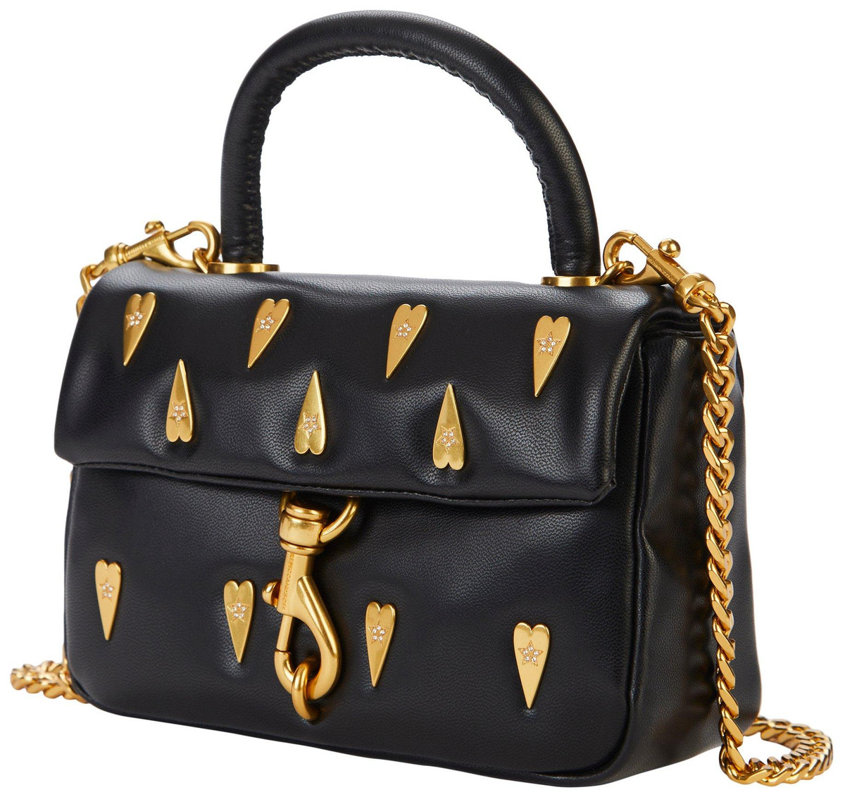 Elevate your style with the Heart Stud Edie Top Handle Crossbody. Crafted in luxe leather, it features a chic front flap with magnetic snap, gold-tone hardware, and a detachable chain strap for versatile wear. The lined interior includes a zip pocket for essentials, blending elegance and function in one timeless piece. Measures 7.5 in x 3 in x 6 in
