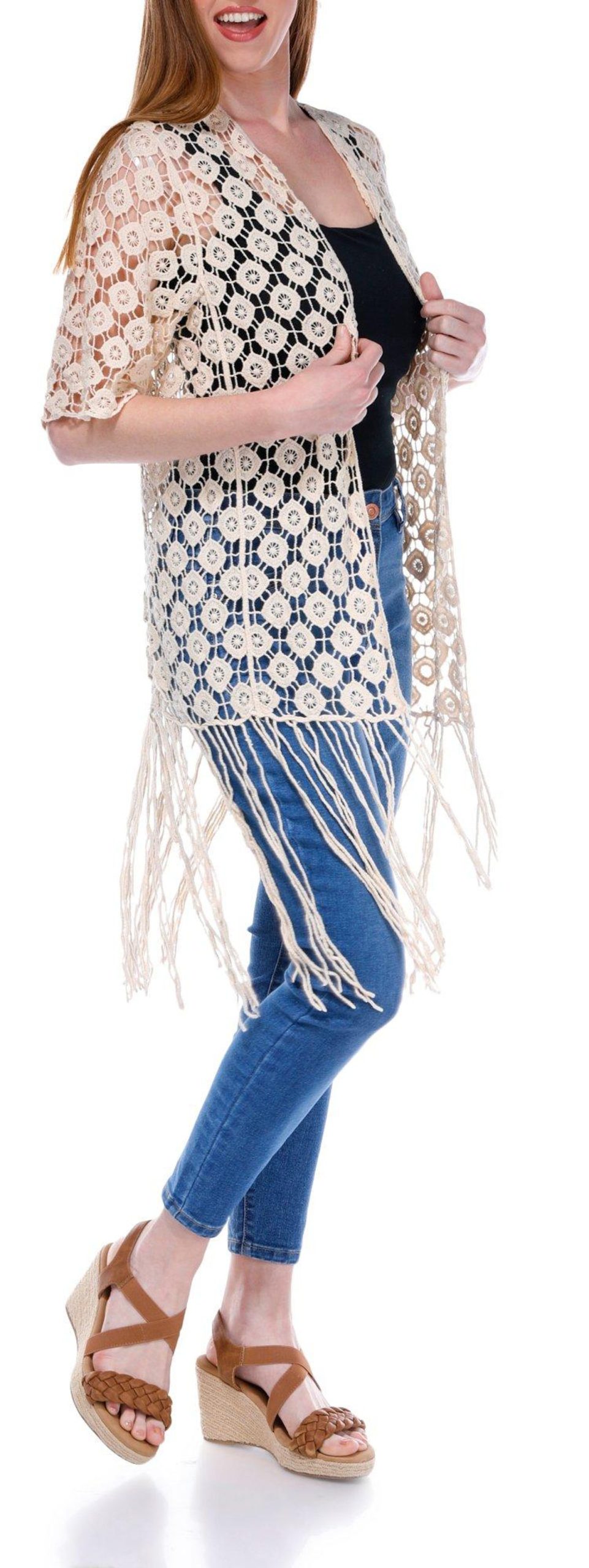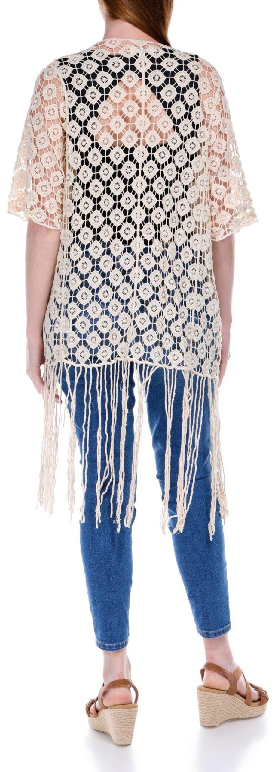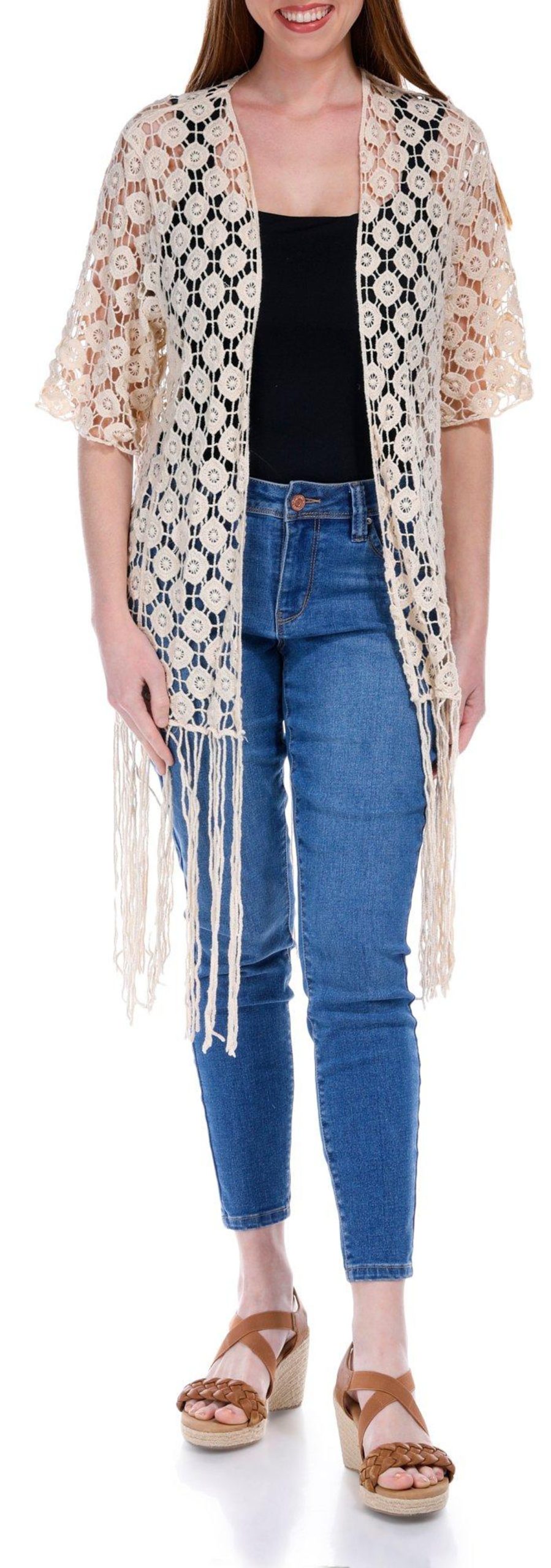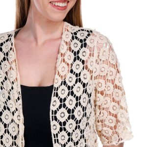 Rebellion Womens Short Sleeve Crochet Kimono Shrug