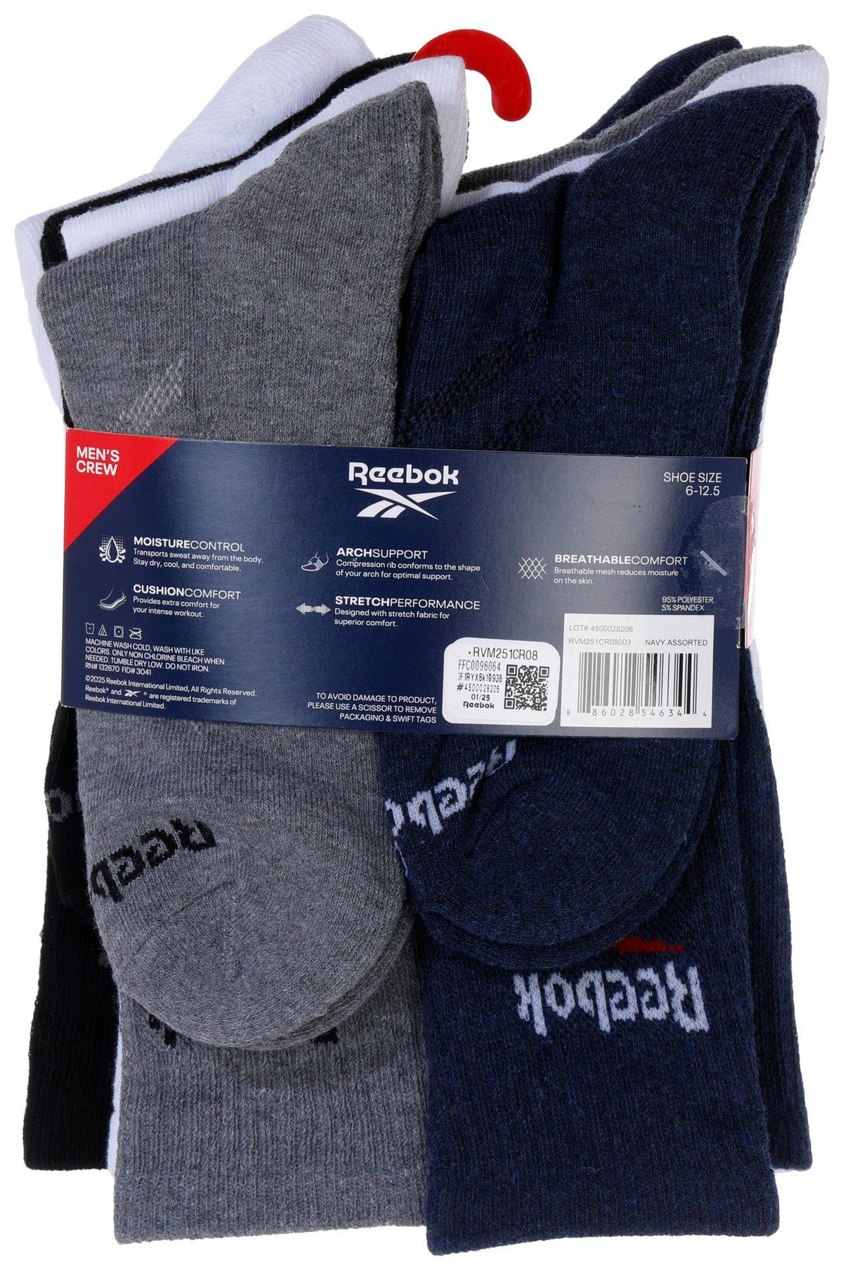 Reebok Mens 7 Pk 1/2 Terry Crew Socks