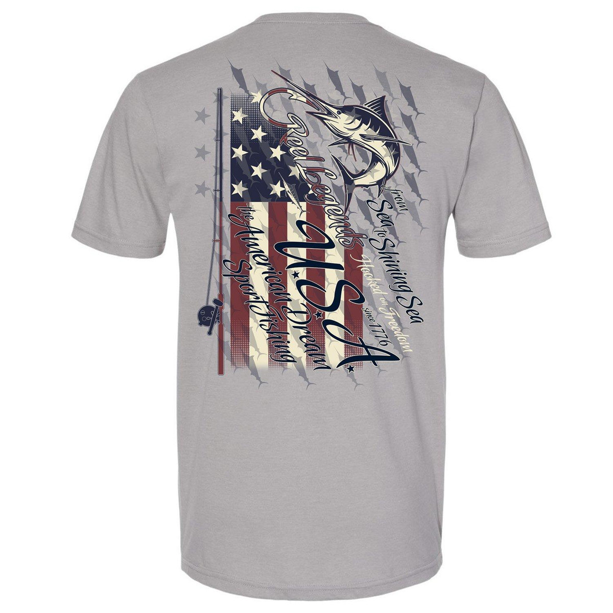 Reel Legends apparel is perfect for land or sea adventure! This comfortable short sleeve tee features lightweight 100% cotton knit fabric, fish graphic design on the back, Reel Legends Florida logo on the chest, and a flexible crew neckline.