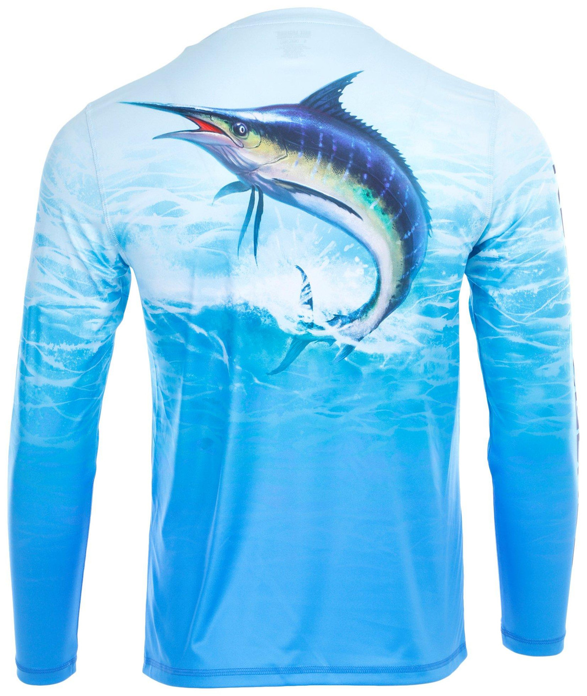 Stay cool and protected with our Men’s Long Sleeve Reel-Tec Shirt. Featuring a striking Marlin Print Design, this shirt combines style with advanced functionality. The sweat-activated cooling technology ensures you stay comfortable even on the hottest days, while the built-in sun protection shields you from harmful UV rays. Perfect for outdoor adventures, this shirt is designed to keep you looking sharp and feeling great all day long. Material is 100% recycled.