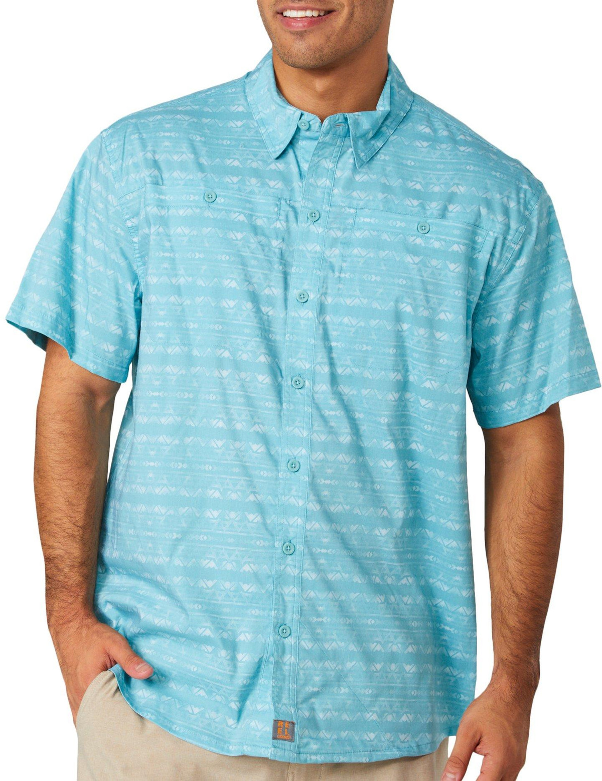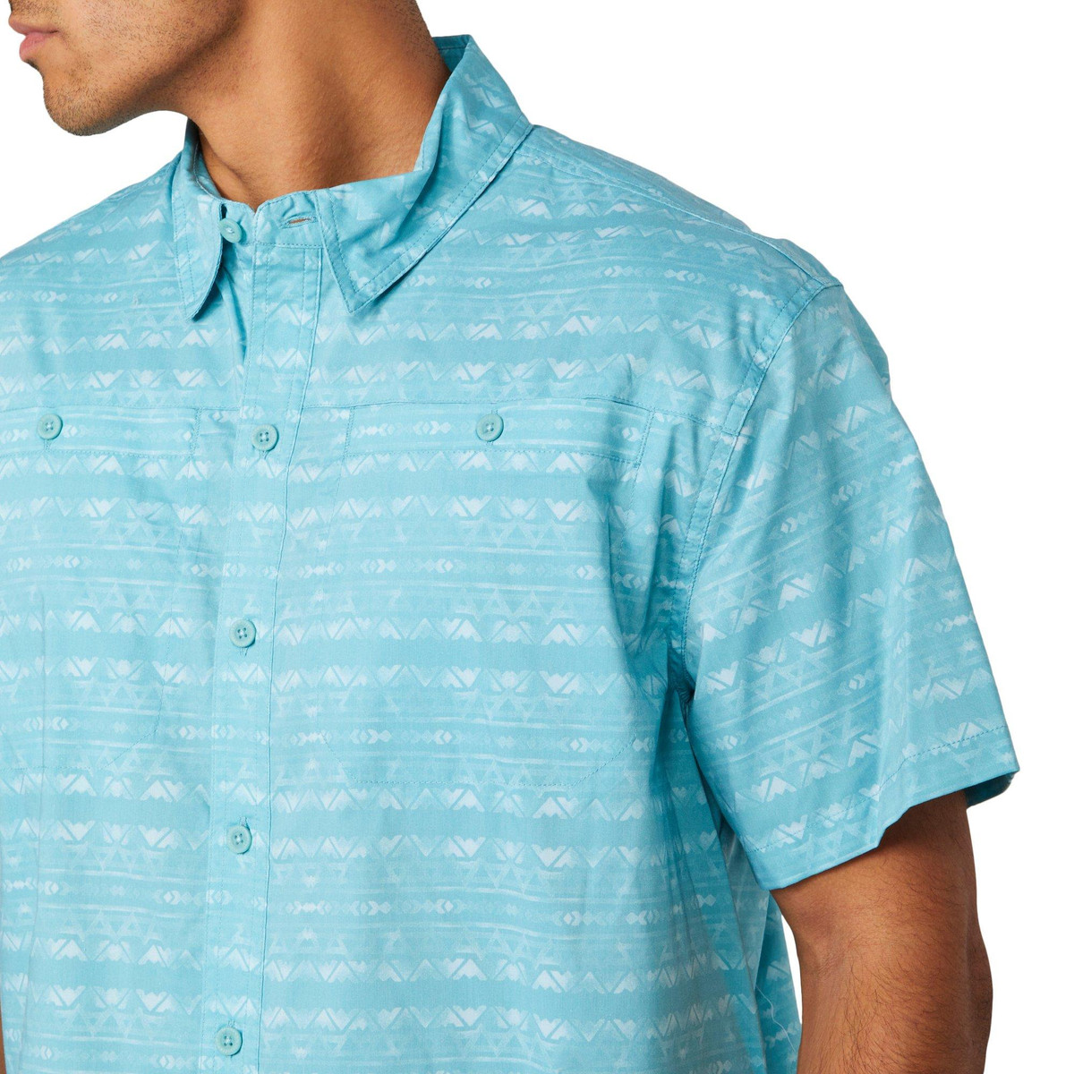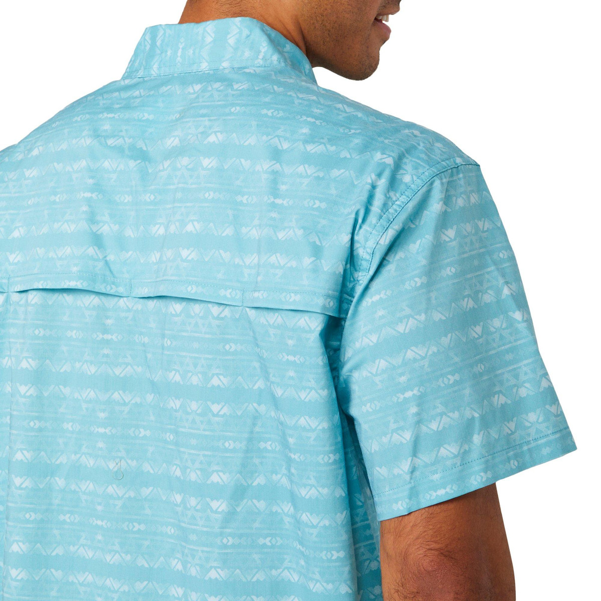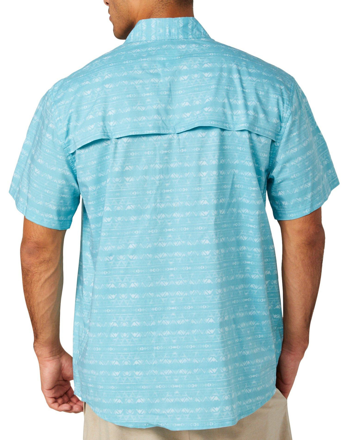 Conquer the outdoors in style with the Terrain Short Sleeve Shirt. Featuring a bold print pattern, buttoned front, and vented panels for breathability, its built for adventure. Integrated sun protection shields you from the elements, while a hidden sunglasses cleaner keeps your view crystal clear. Fabrication 75% polyester, 22% cotton, 3% spandex.