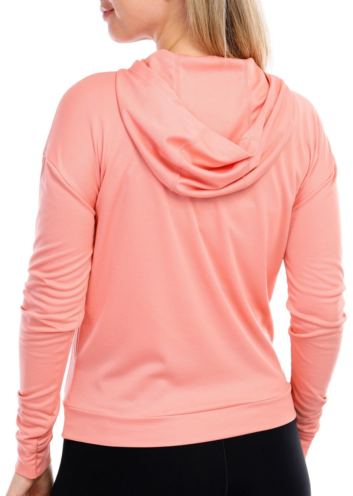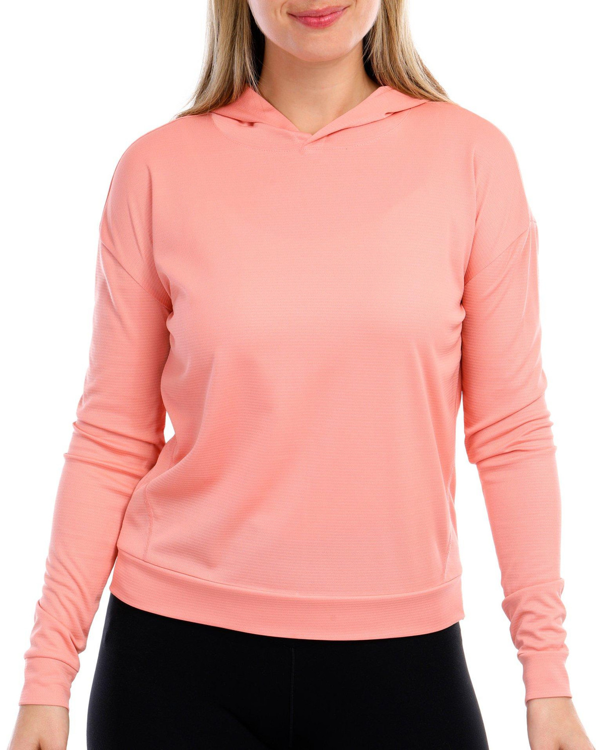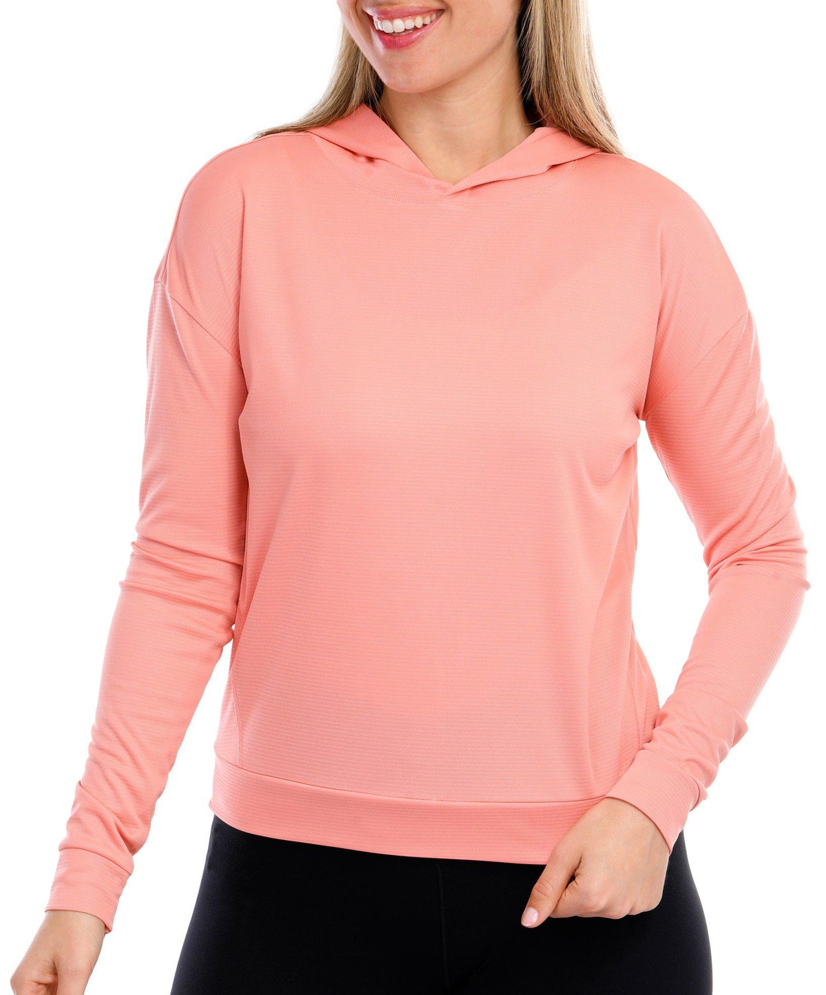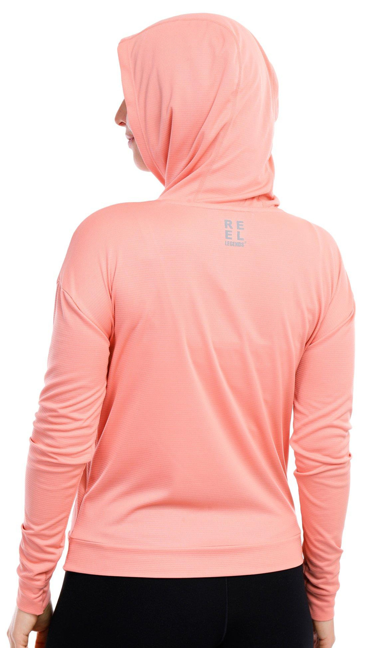 Reel Legends offers performance designs to support the active lifestyle. This hoodie long sleeve top features a solid color design on lightweight freeline fabrication like line running through, banded hemline, seamed styling design for flattering fit, and solid color that allows for effortless matching. Top length measures approximately 24 in. length from shoulder to back hemline. Fabrication is 100% polyester.