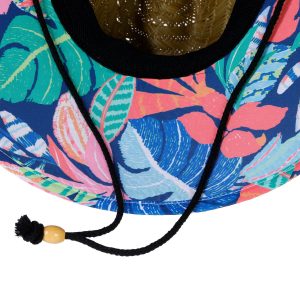 Stay cool under the sun with this Women’s Lifeguard Straw Hat. Featuring a tropical floral fabric underside and a front leather patch with Florida-themed detailing, it offers breathable coverage with a wide brim and adjustable neck string. Ideal for gardening, beach days, or outdoor adventures. Spot clean for best care.