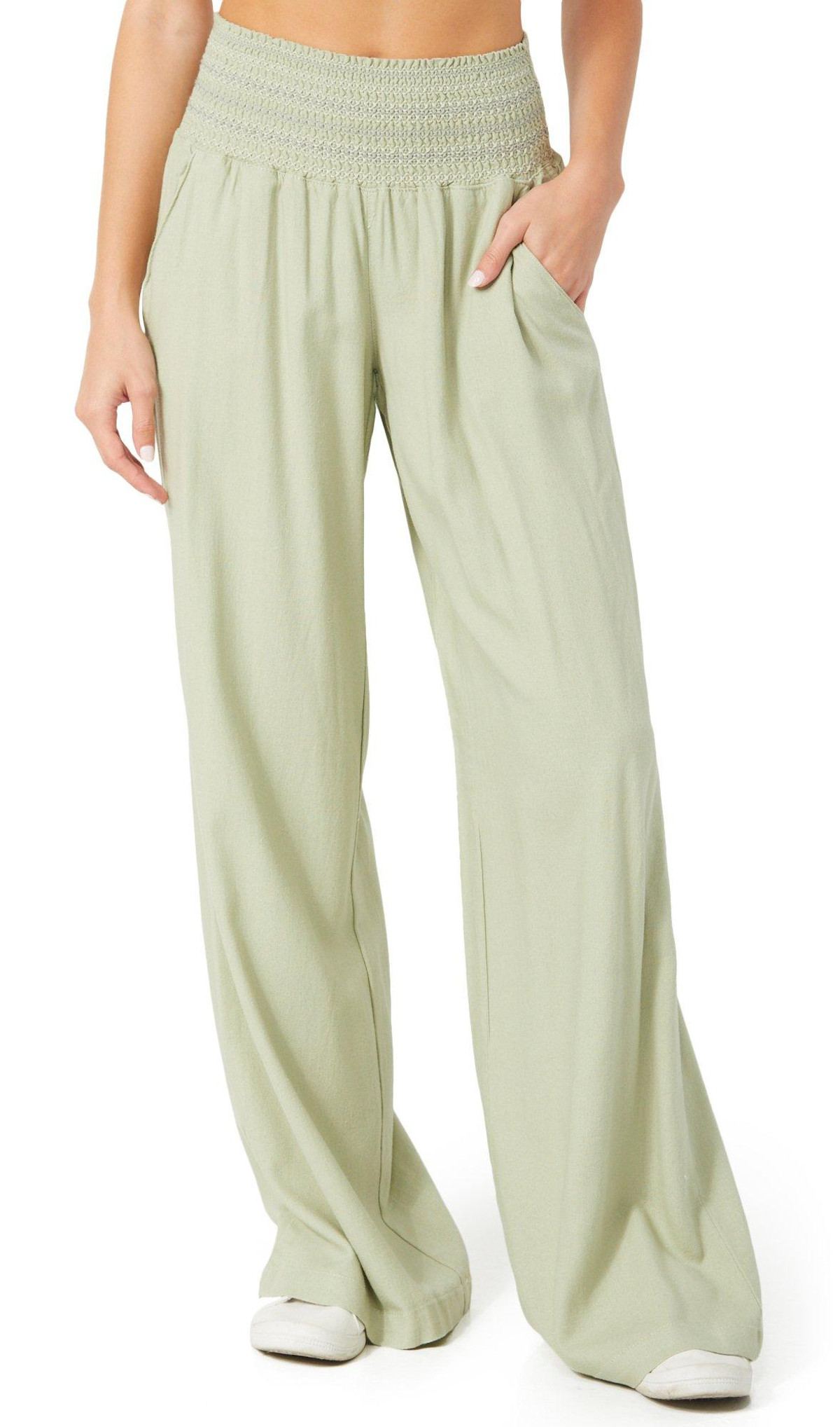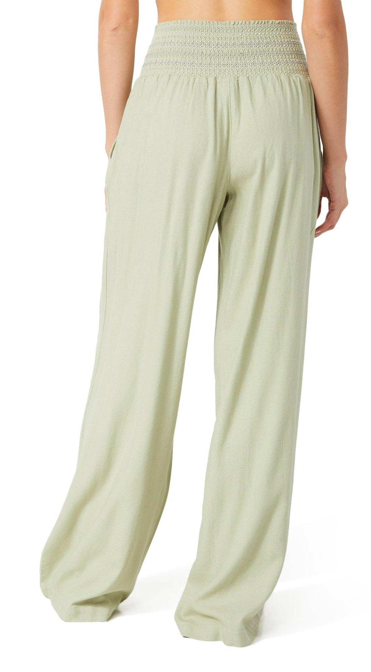 These smocked, wide leg pants feature a striped color and are crafted from a soft linen blend for breathable comfort. With a relaxed shape and easy style, they’re perfect for everyday wear in warm weather. Fabrication is 85% rayon, 12% linen, 3% cotton.