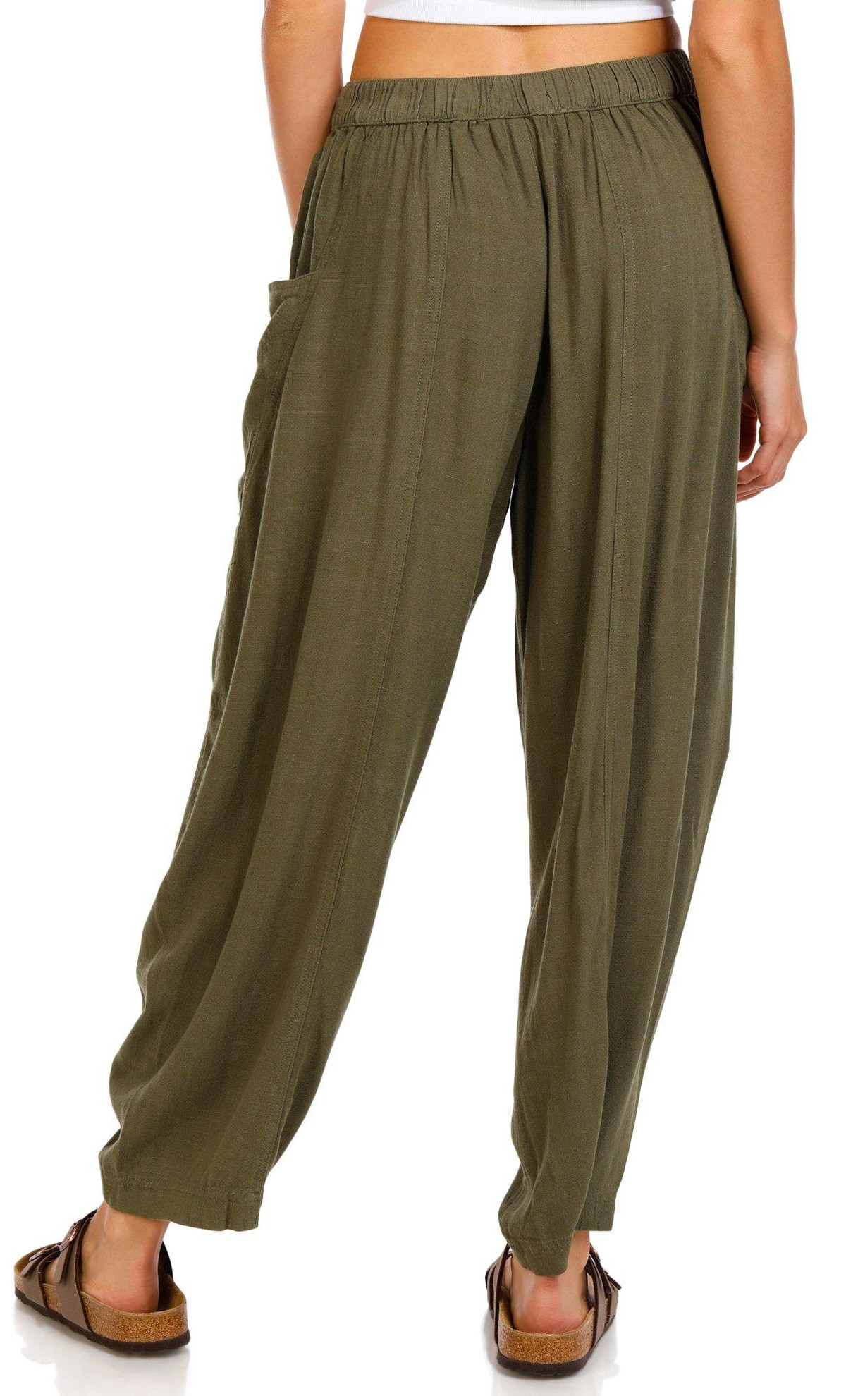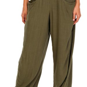 These barrel leg pants feature a solid color and are crafted from a soft linen blend for breathable comfort. With a relaxed shape and easy style, they’re perfect for everyday wear in warm weather. Fabrication is 85% rayon, 15% linen.