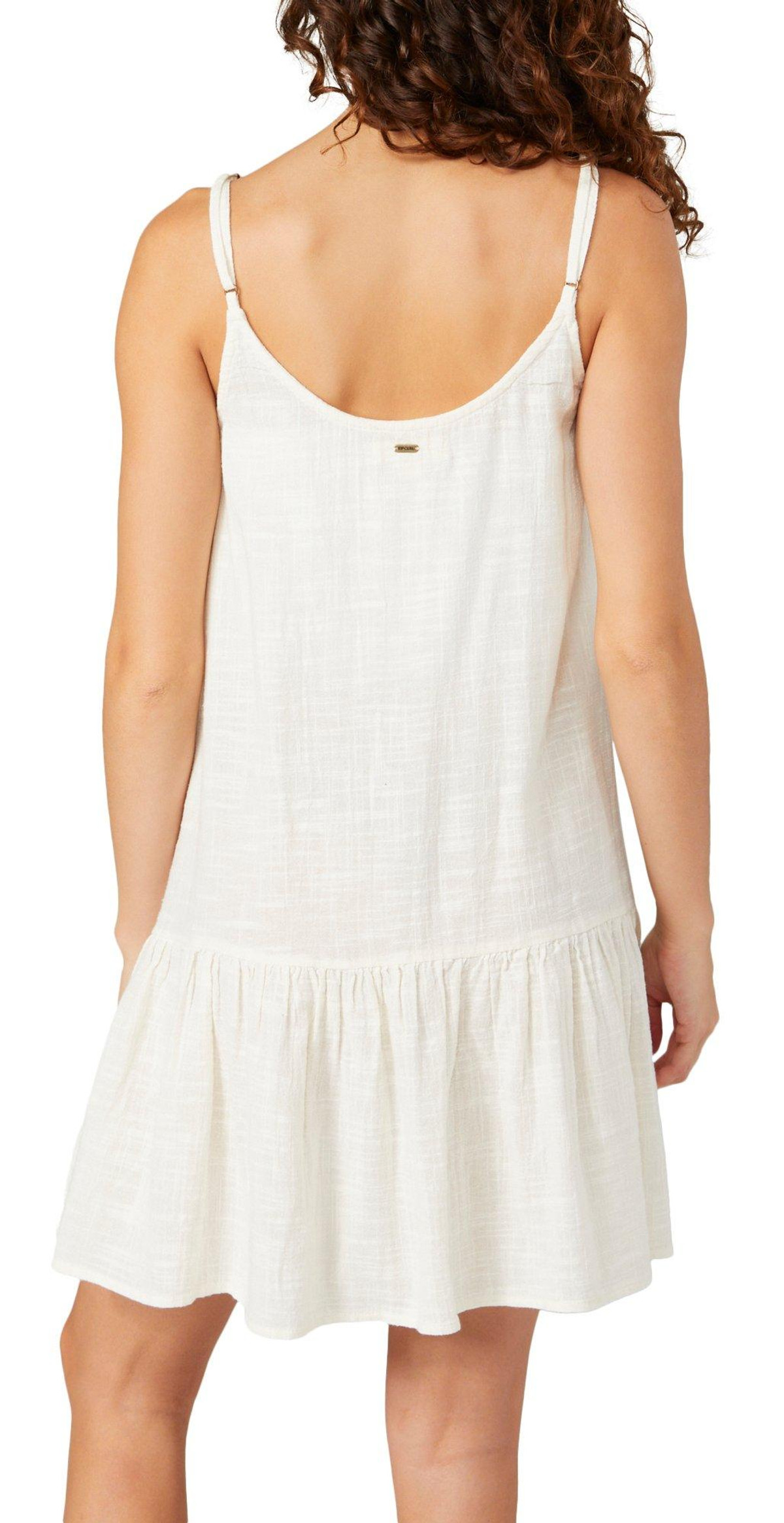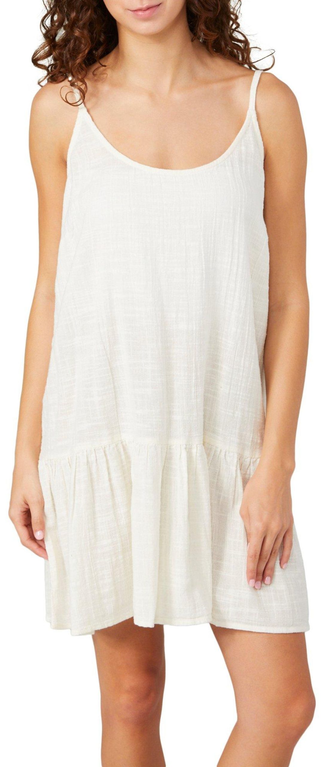 The Juniors Sleeveless Surf COverup delivers laid-back style with a solid color design and casual charm. Featuring adjustable straps and a ruffle hem, this dress is perfect for beach days and easygoing adventures. Fabrication 100% cotton
