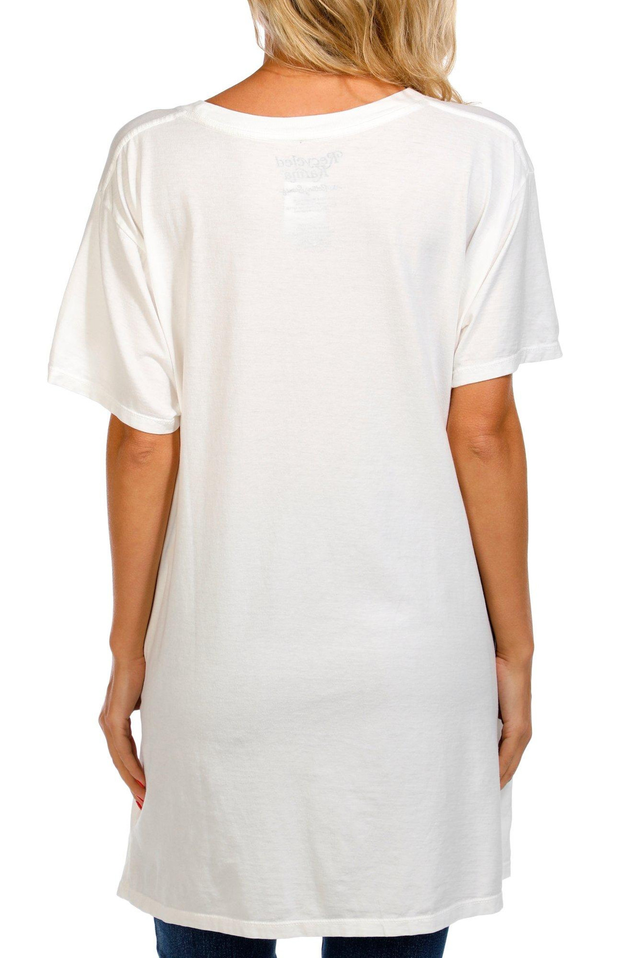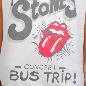 Embrace music vibes with this Juniors Bus Trip Graphic T-Shirt. Made from premium cotton, this tee features a Rolling Stones concert graphic design, with short sleeves and a classic crew neckline. Perfect for casual outings or cool nights at the beach, this t-shirt combines comfort and style effortlessly, making it a versatile addition to your wardrobe. Fabrication is 100% cotton. Top length measures approximately 31 in.