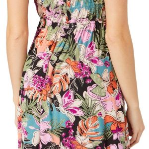 Introducing the Juniors La Vida Mini Dress, crafted from 100% viscose for a lightweight and flowy feel. This dress features a vibrant tropical floral print that brings a touch of paradise to your wardrobe. The adjustable straps ensure a perfect fit, while the keyhole neckline adds a stylish detail. With a length of 24 inches, this mini dress is perfect for warm weather outings, offering a chic and breezy look for any occasion.