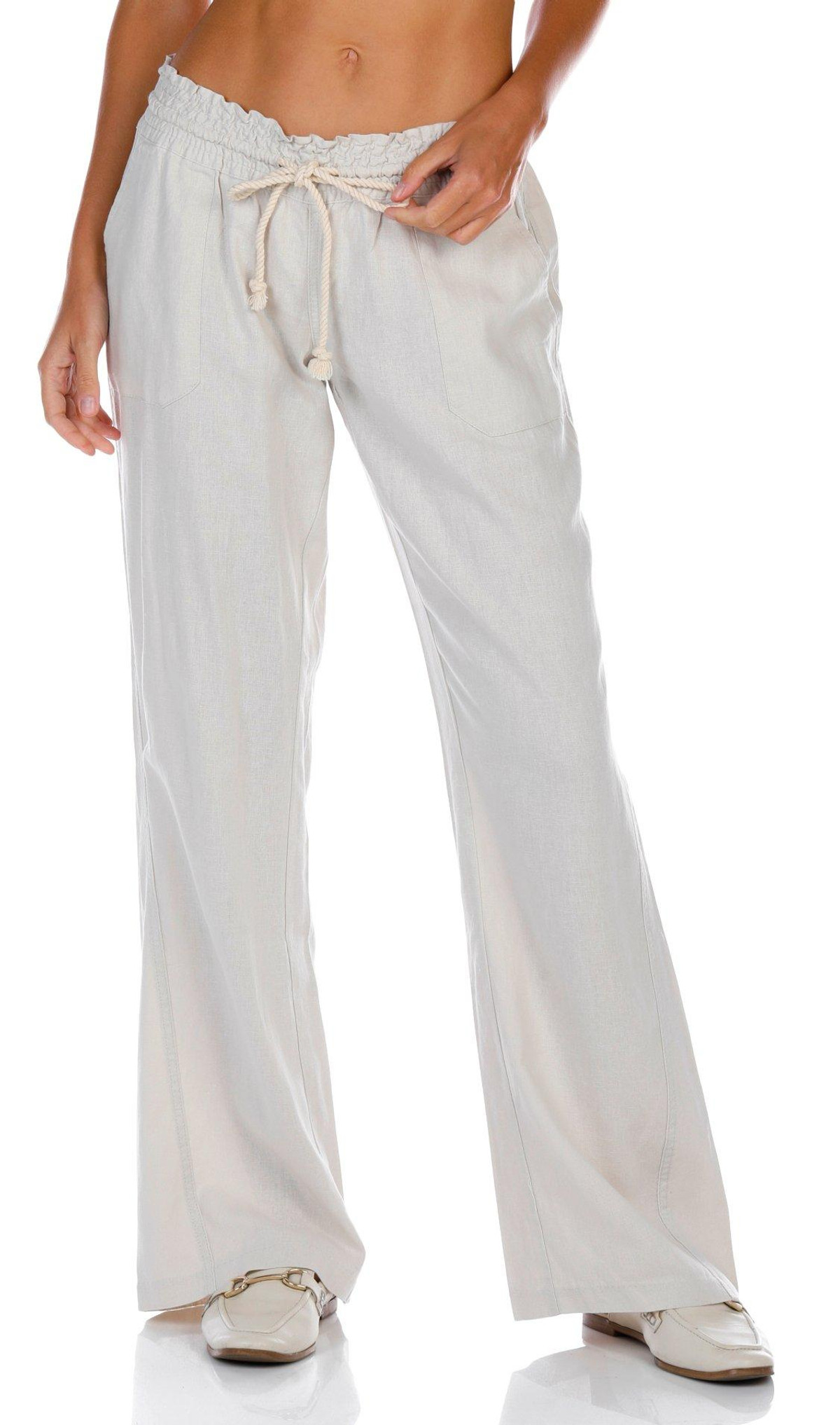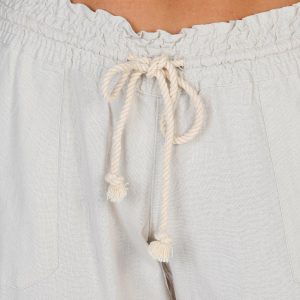 The Juniors Oceanside Pants offer laid-back comfort with a solid color, smocked waistband, and drawstring tie for a perfect fit. Featuring front patch pockets, back pockets, and a 32-inch inseam, they are ideal for relaxed days with a touch of utility style. Fabrication 55% linen, 45% viscose