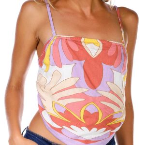 Stand out in this Roxy bandana-style printed top featuring bold patterns and a breezy fit. Perfect for festivals beach days or casual outings it pairs effortlessly with denim or flowy skirts. Soft fabric and eye catching print make it a go to for laid back style with a fun twist. Fabrication is 70% polyester and 30% elastaine.