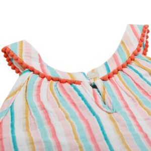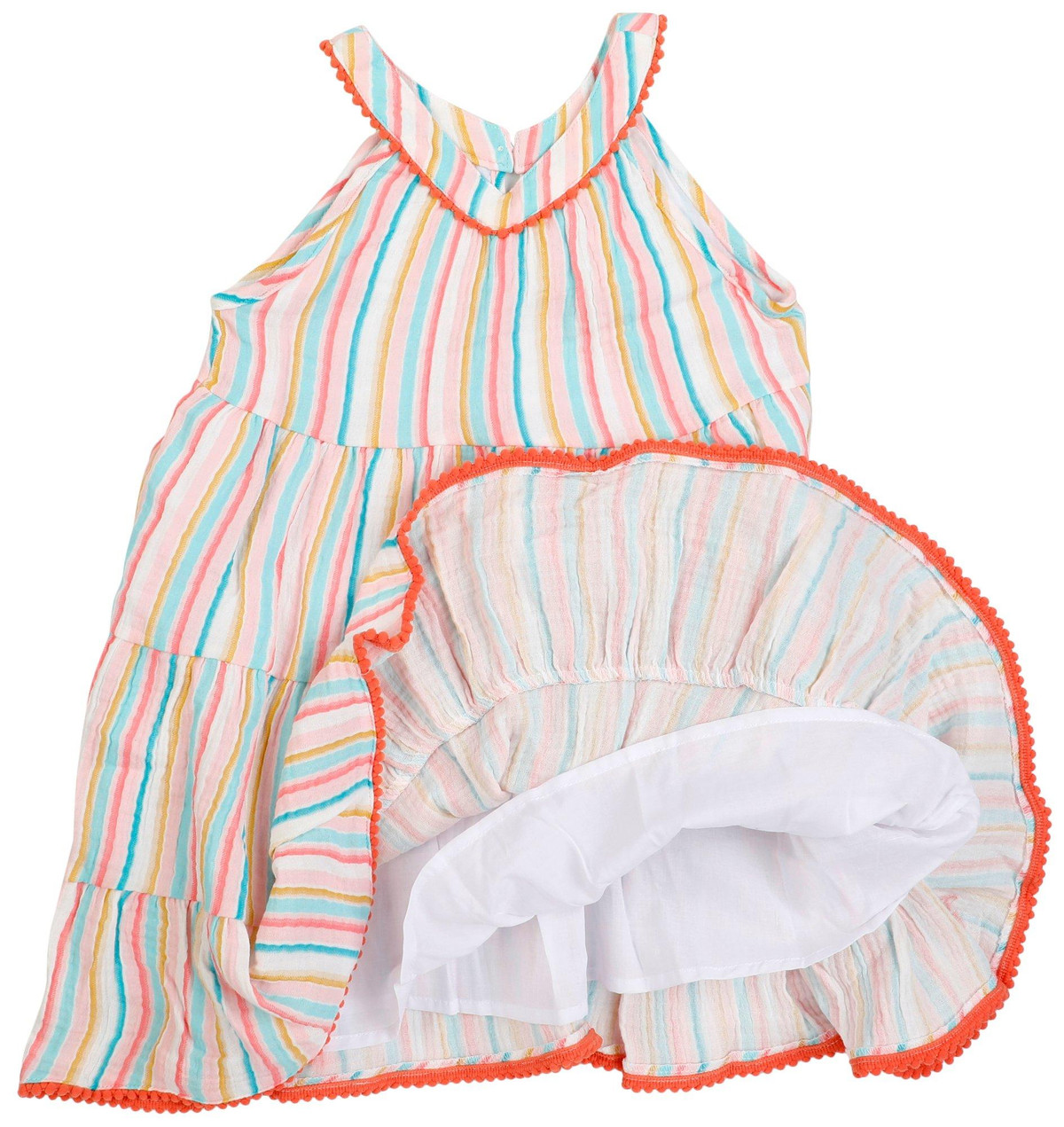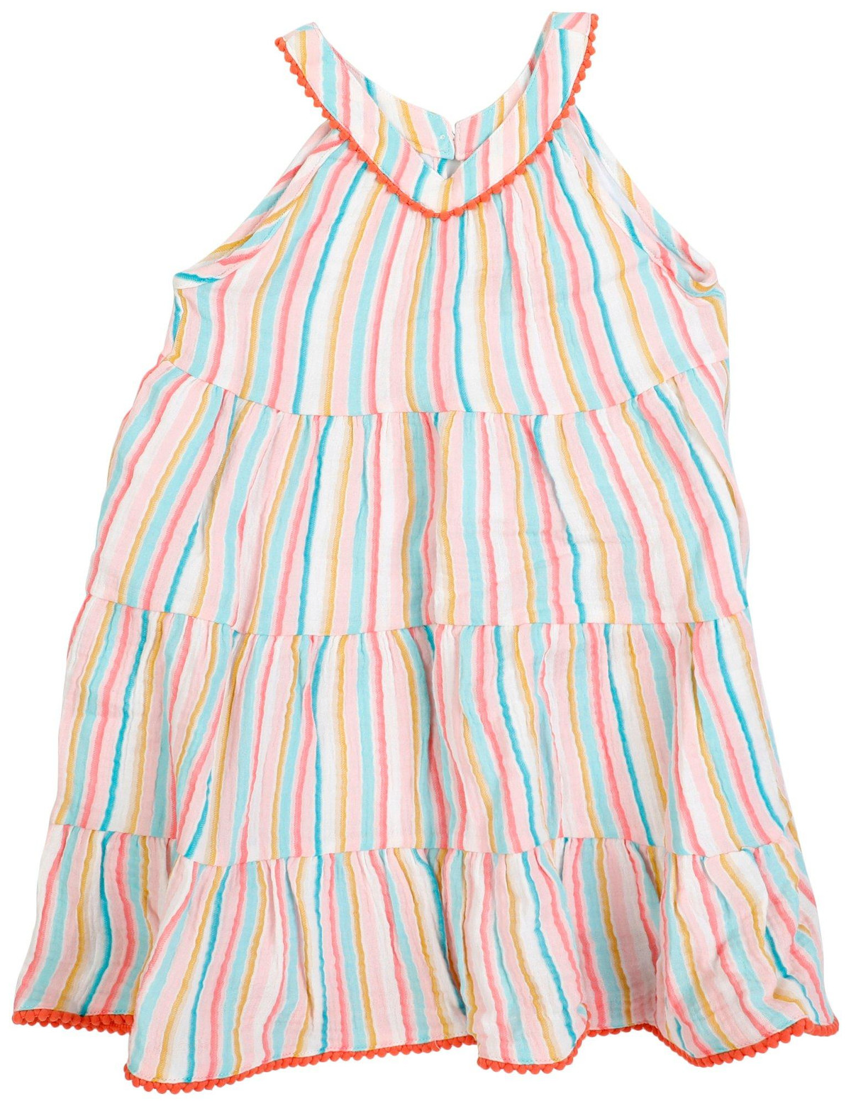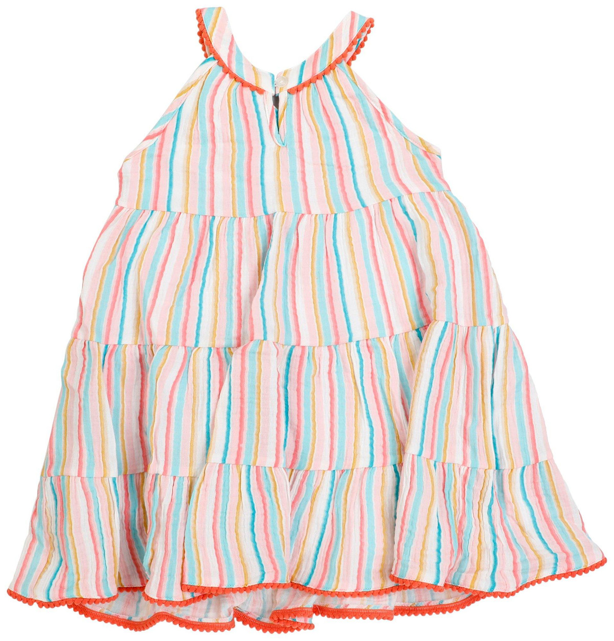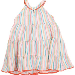 Let your little one bloom in the Striped Sleeveless Dress. Crafted from 100% cotton, this charming dress features a sleeveless design perfect for warm days. The tiered skirt adds a touch of whimsy and movement, making it ideal for twirling. Adorned with a beautiful striped print, this dress is perfect for any special occasion or a fun day out. Fabrication is 100% cotton.